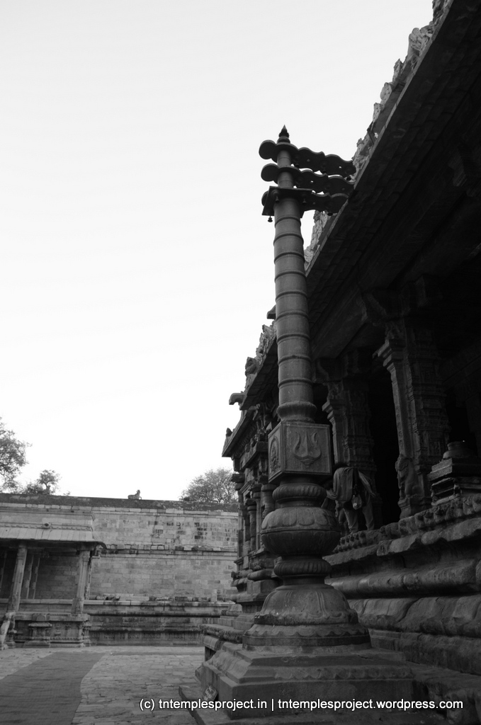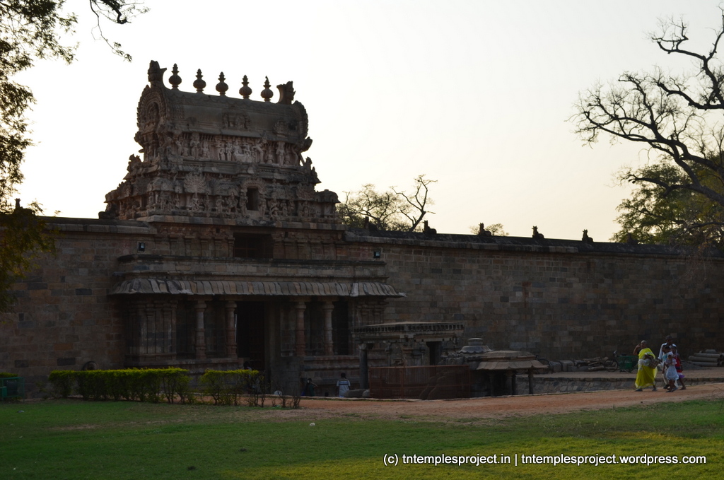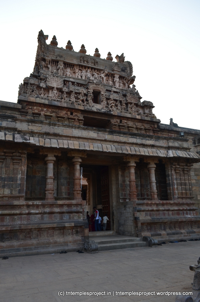 Due to the raised level of the mantapam and the sanctum, the temple is in the style of a maadakoil, although not built by Kochchenga Cholan. Periya Nayaki Amman’s sannadhi is not within the main Airavateswarar shrine, but in a separate temple within the temple complex. The temple’s architecture and design incorporates elements that clearly show the influence of the Veera Saiva sect. Many sculptures from this temple, including that depicting the story of Bhikshatanar and the rishi patnis, are currently housed at the Thanjavur Museum.