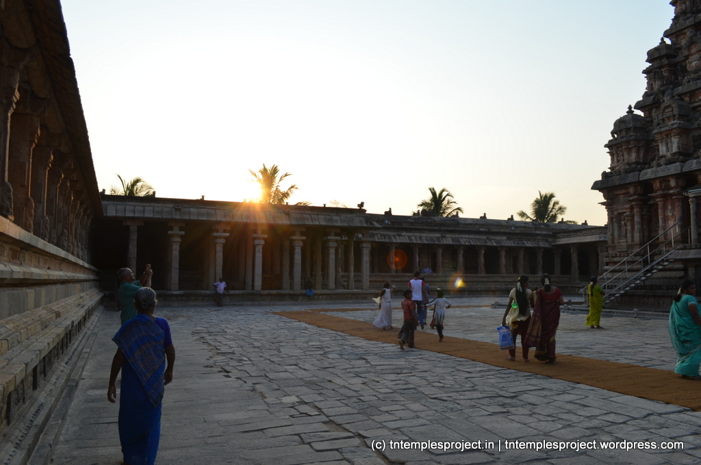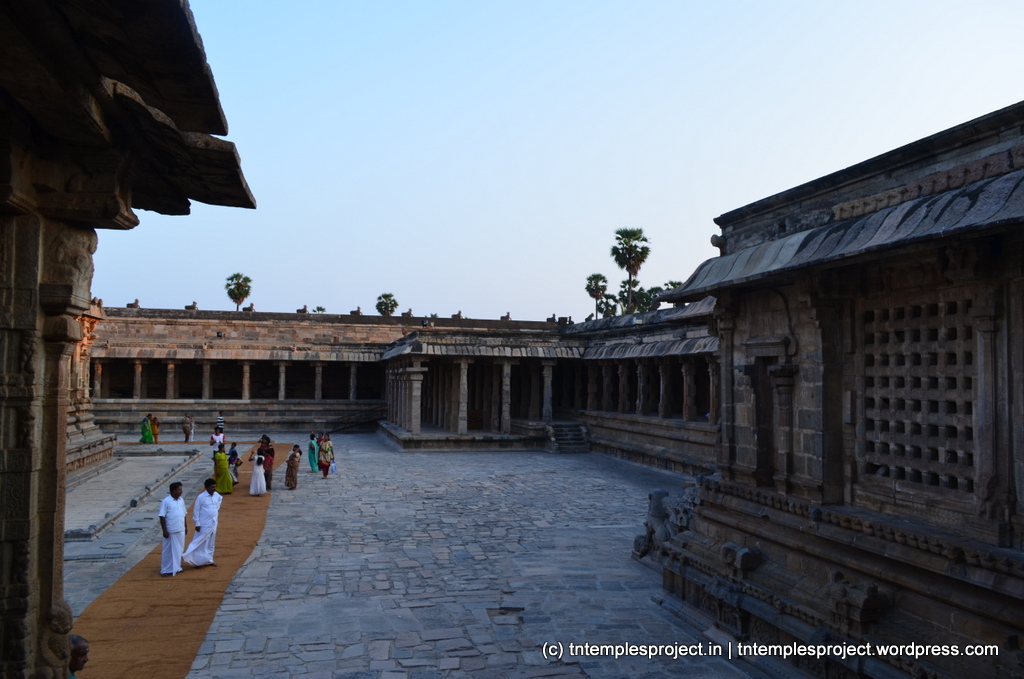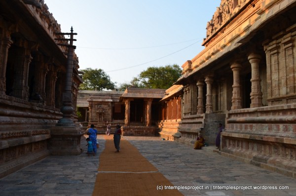 The original temple complex at Darasuram is said to have been much larger than the current one, with sapta veedhi (seven concentric streets, much like Srirangam), the innermost of which is the current structure seen today. The Darasuram complex was part of the old city of Pazhayarai, one of the capitals of the Chola empire.