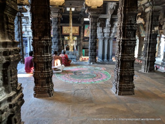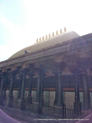 Sekkizhar was a devout Saivite and a minister during the reign of Kulothunga Chola II. In order to wean the king away from the philosophy of the Jain text Jivaka Cintamani, Sekkizhar wrote the Periya Puranam – a compilation of the lives of the 63 Saivite Nayanmars, sitting in the thousand-pillared hall of this temple. Legend has it that the Lord himself provided Sekkizhar with the first feet of the first verse as a divine voice from the sky declaring Ulakellaam (“உலகெலாம்”, Tamil, meaning “all the world”).