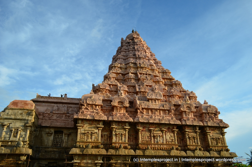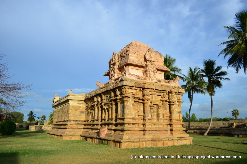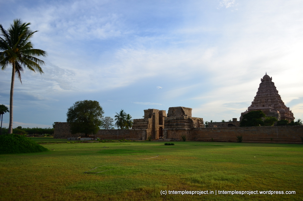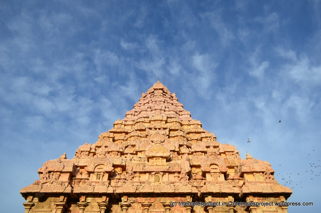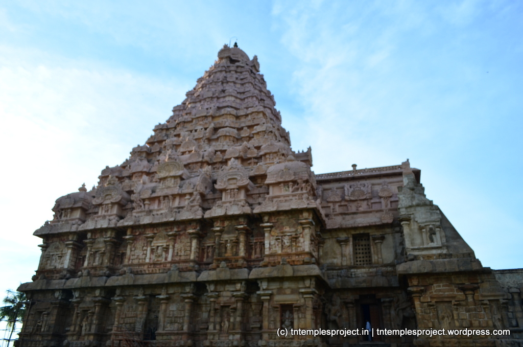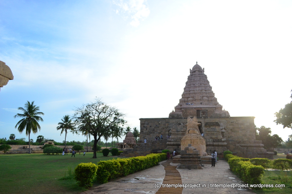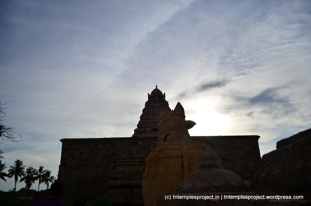 The temple is easily recognisable (as is the Thanjavur Big Temple) by the general shape of the vimana, and the strong similarities of their shikharas. However, there is a view that both temples were designed with the Achaleswarar temple (Arur Araneri, a separate Paadal Petra Sthalam inside the Tiruvarur Thyagarajar temple) in mind.