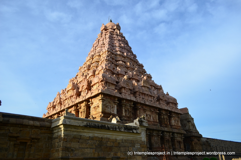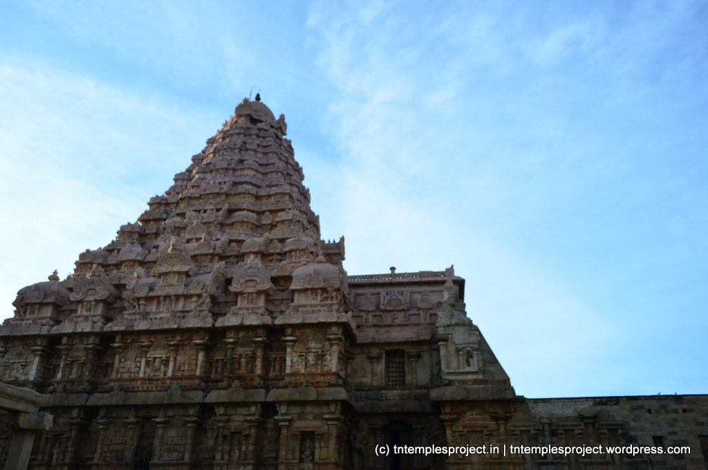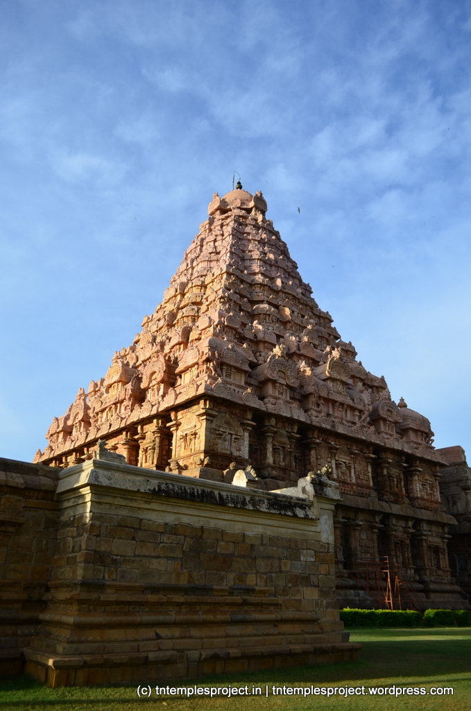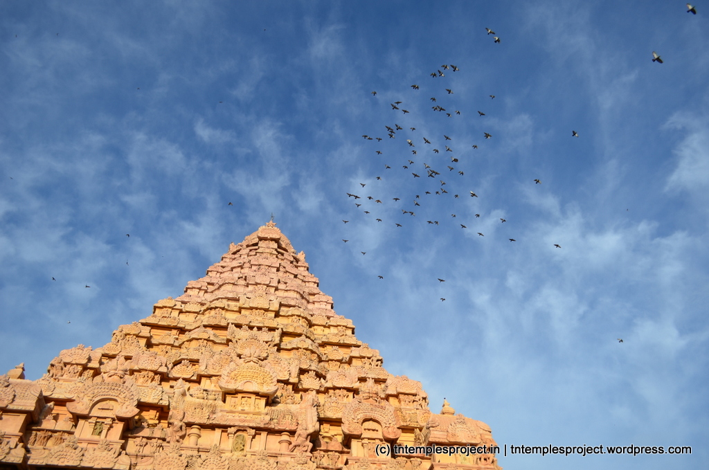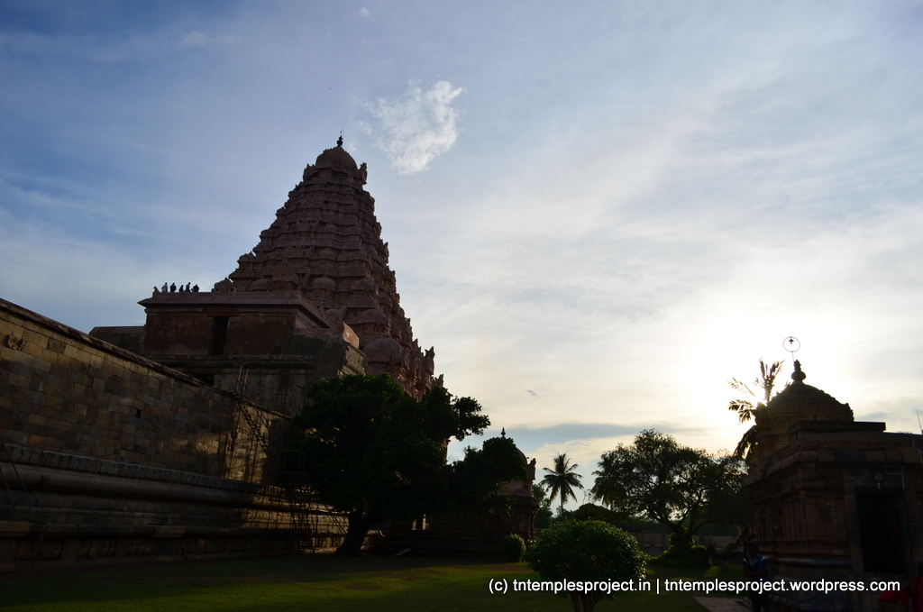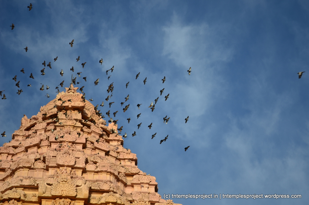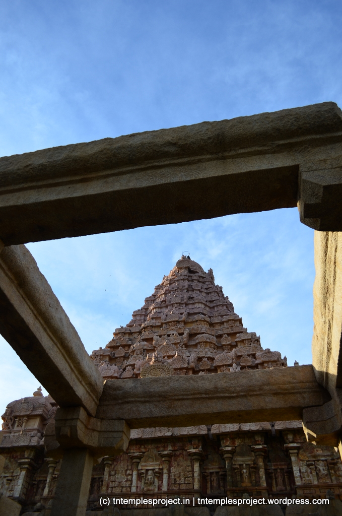 Interestingly, the vimanam of the temple is slightly concave, compared to the slight convexity of the vimanam at Thanjavur.