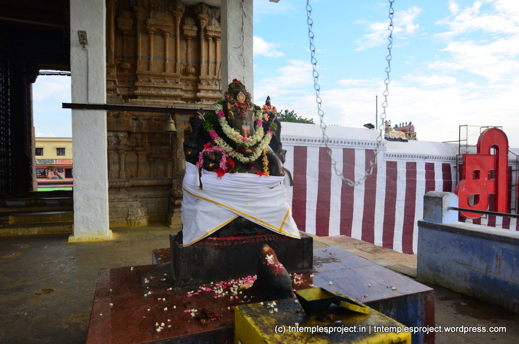 வழக்கமான உருவப்படத்திலிருந்து விலகி, இந்த கோவிலில் உள்ள தட்சிணாமூர்த்தி தனது வலது காலை மேலே தூக்கி இடது பாதத்தை அபஸ்மரா புருஷனின் மீது திருப்பியுள்ளார்.