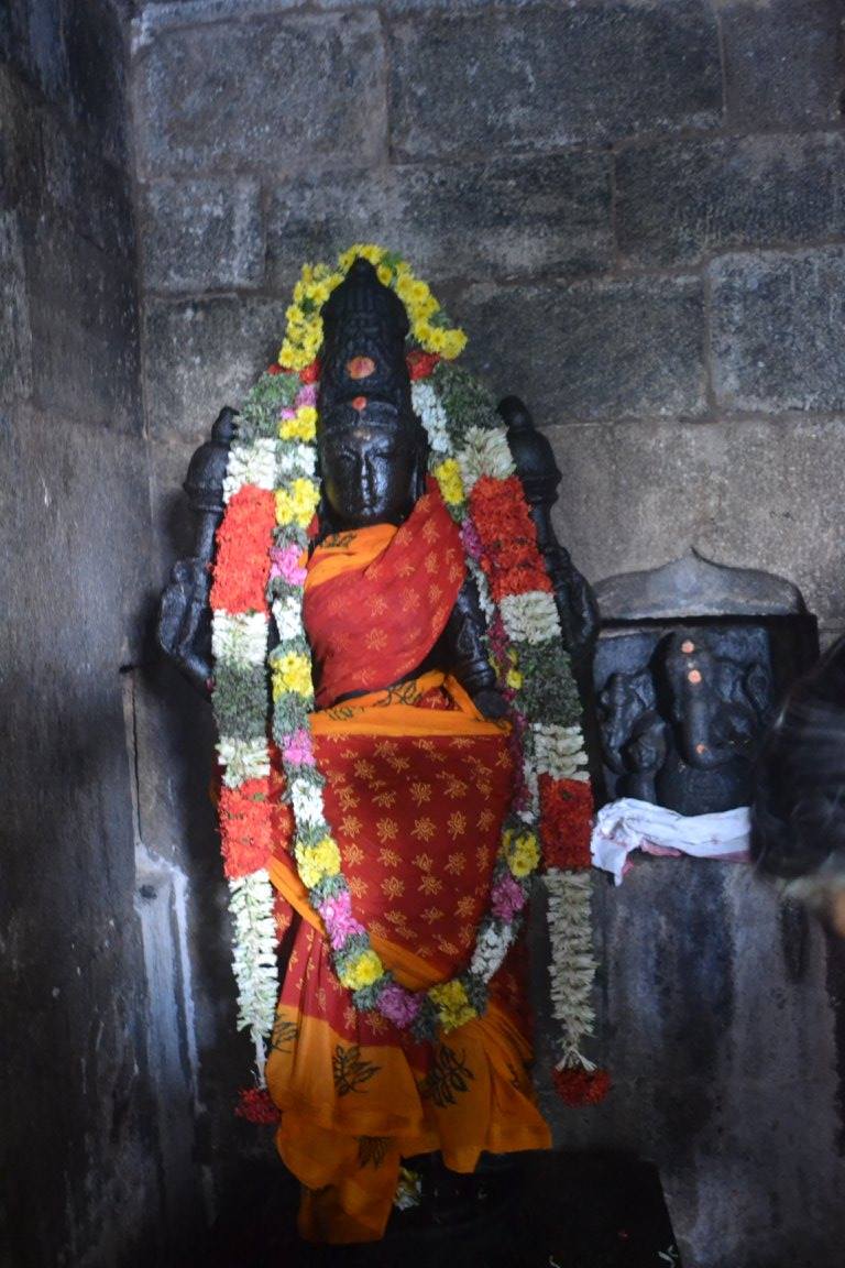 இக்கோயிலில் உள்ள கட்டிடக்கலை மற்றும் உருவ அமைப்பு தனித்தன்மை வாய்ந்தது. இரண்டு துவாரபாலகர்களும் ஒருவர் கோபமாகவும், மற்றவர் அமைதியாகவும் காட்சியளிக்கிறார்கள் – இங்கு வழிபடுவதால், பக்தன் கோபத்தைக் கைவிட்டு அமைதி அடைவதைக் குறிக்கிறது. இங்குள்ள பைரவர் ஒரு ஸ்வர்ண பைரவர், ஆனால் மிகவும் கோபமாக காட்சியளிக்கிறார். முருகனின் சன்னதியில் ஆறு பக்க (ஷட்கோண) யந்திரம் உள்ளது. நவக்கிரகங்களின் ஒரு பகுதியாக சூர்யன் தனது மனைவிகளான உஷா மற்றும் சாயாவுடன் இருக்கிறார்.