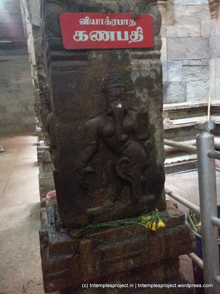 இங்கு விநாயகர் யானை முகத்துடன் காணப்படுகிறார், ஆனால் புலியின் கால்களுடன் இருக்கிறார், எனவே வியாக்ரபாத விநாயகர் என்று அழைக்கப்படுகிறார். இப்படிப்பட்ட உருவப்படம் அரிதானது என்று சொல்லத் தேவையில்லை. ராகு மற்றும் கேது தோஷங்களில் இருந்து விடுபட, பக்தர்கள் தங்கள் வயதுக்கு ஏற்ப பல பானைகளில் தண்ணீரை அவர் மீது ஊற்றுகிறார்கள்.