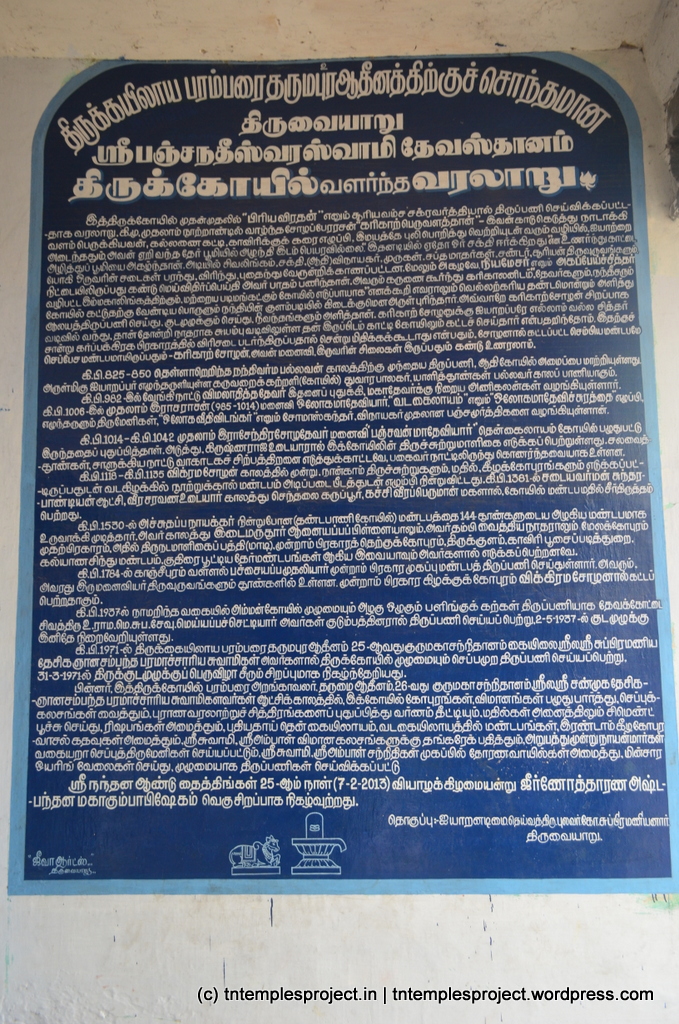 நந்தியின் திருமணத்தை கொண்டாடும் திருவையாறு சப்த ஸ்தான திருவிழாவின் ஒரு பகுதியாக இதுவும் ஒன்று. ஏழு கோயில்களும் ஒப்பீட்டளவில் அருகிலேயே அமைந்துள்ளன, மேலும் திருவையாறு தவிர (இது ஒரு பெரிய கோயில்) அவை சுமார் 6 மணி நேரத்தில் மூடப்பட்டிருக்கும். மாற்றாக, திருவையாறு உட்பட ஏழு கோயில்களுக்கும் ஒரு நாள் முழுவதும் நிதானமாகச் செல்லலாம்.