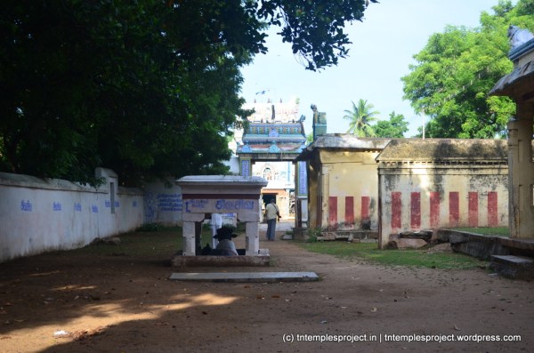 Since Appar had sanctified this temple through his uzhavar pani (maintenance), Sambandar did not want to defile it, and wished to worship the Lord from outside. It is said in the sthala puranam that Siva asked Nandi to move a little bit so that Sambandar could worship Him without having to come into the temple. The Nandi at this temple is aligned slightly to the line of sight of the moolavar Lingam from the gopuram.