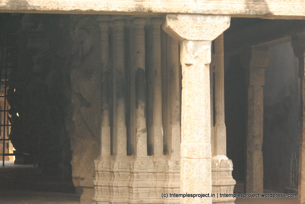 மண்டபங்கள் மற்றும் சன்னதிகளும் பெரியவை, அதே போல் உதய மார்த்தாண்டரால் கட்டப்பட்ட இசைத் தூண்களின் மண்டபமும் உள்ளது. 16 ஆம் நூற்றாண்டில் திருவிதாங்கூர் மன்னர் வர்மா. இந்த மண்டபத்தில் உள்ள ஒவ்வொரு தூணிலும், மற்றொரு கல்லையோ அல்லது ஒருவரின் விரல்களையோ தட்டும்போது, வெவ்வேறு தொனியில் ஒலி எழுப்புகிறது. நாயக்கர் காலத்தைச் சேர்ந்த பல்வேறு இதிகாசங்கள், புராணங்கள் மற்றும் திருவிளையாடல்களின் கதைகளின் 200 க்கும் மேற்பட்ட தனிப்பட்ட ஓவியங்கள் மற்றும் 13 ஆம் நூற்றாண்டைச் சேர்ந்த ஒரு பெரிய தானியக் களஞ்சியமும் உள்ளன.