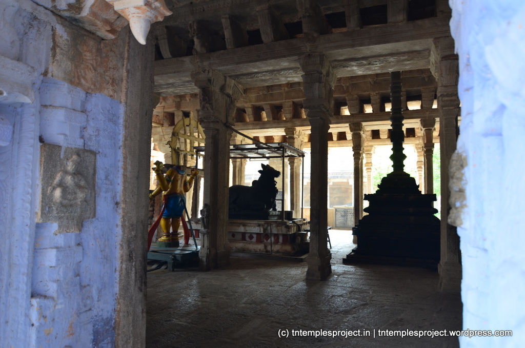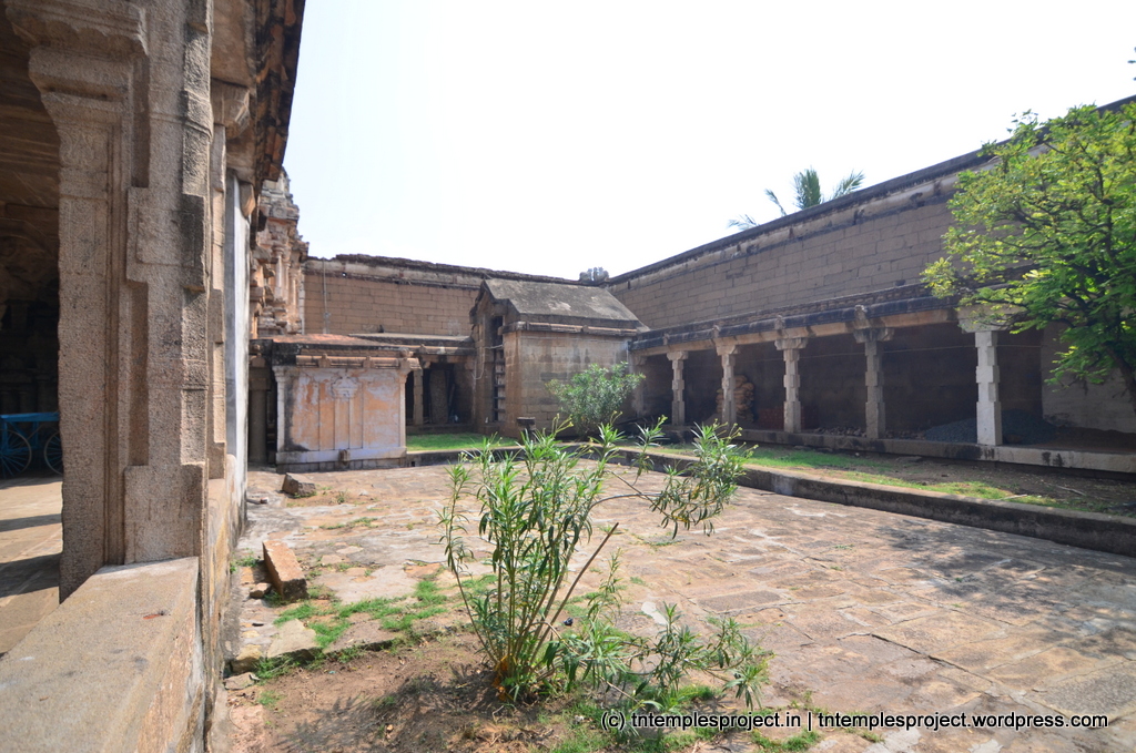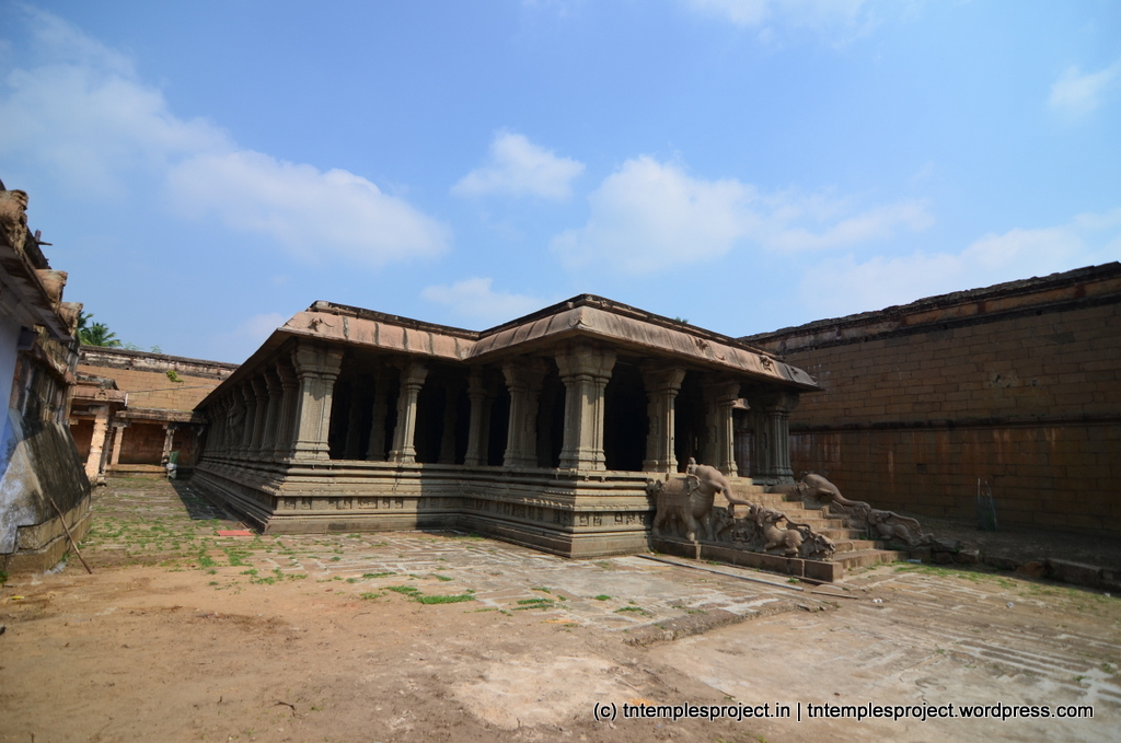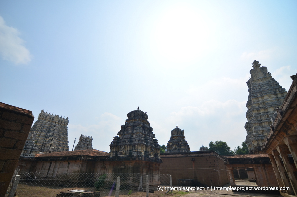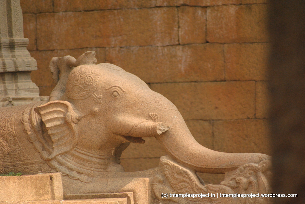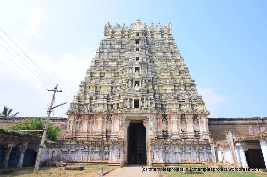 தஞ்சாவூரில் உள்ள பிரகதீஸ்வரர் கோயிலைப் போலவே, இந்தக் கோயிலின் கருப்பொருளும் அளவில்தான் உள்ளது. இந்தக் கோயில் ஒரு பெரிய பரப்பளவில் பரவியுள்ளது, பிரதான கிழக்கு நுழைவாயிலை அலங்கரிக்கும் மிக உயரமான ராஜ கோபுரம் (படிக்கட்டுகளைப் பயன்படுத்தி ஒருவர் மேலே ஏறலாம்), அதைத் தொடர்ந்து ஒரு பெரிய பலிபீடம் உள்ளது. இங்குள்ள நந்தி சுமார் 7 அடி உயரம் கொண்டது, அதில் ஒரு சங்கிலி மற்றும் கொலுசுகள் உள்ளன. அம்மன் சன்னதியின் வலதுபுறத்தில், பிக்ஷாதனராக சிவனின் ஒரு மூர்த்தி உள்ளது, அது சுமார் 6 அல்லது 7 அடி உயரம் கொண்டது.