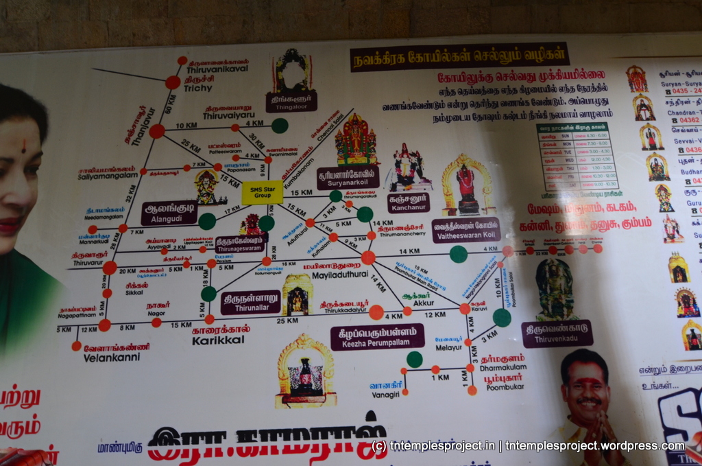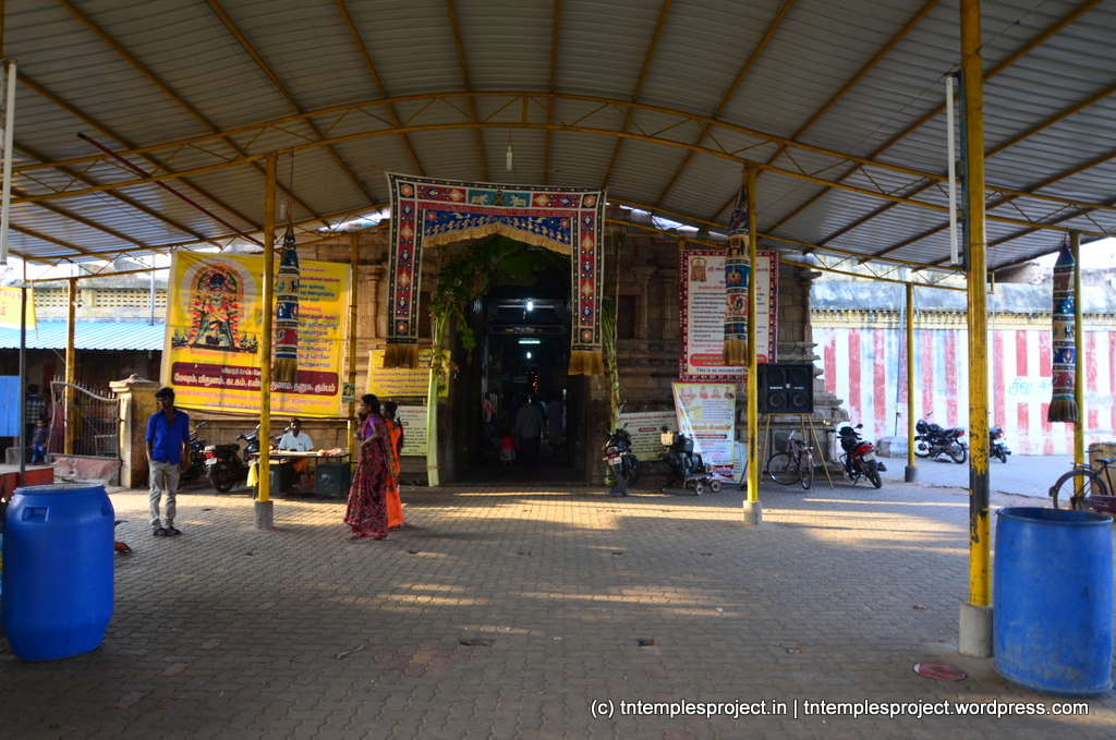 This is one of the Pancha Aranya Kshetrams (or five forest temples) near Kumbakonam, and according to sthalam puranam, the recommended route is to start a pilgrimage in the morning, and visit the 5 temples on the same day, in the following order (for pujas): Tirukarukavur (ushatkala puja, early morning), Avalivanallur (kalasandhi puja, morning), Haridwaramangalam (uchikala puja, midday), Alangudi (sayaratchai, evening) and Tirukollampudur (arthajamam, night). However, in today’s terms, these temples are within a total driving distance of about 36km, and can quite easily be completed in about 4-5 hours, including the temple visit time.