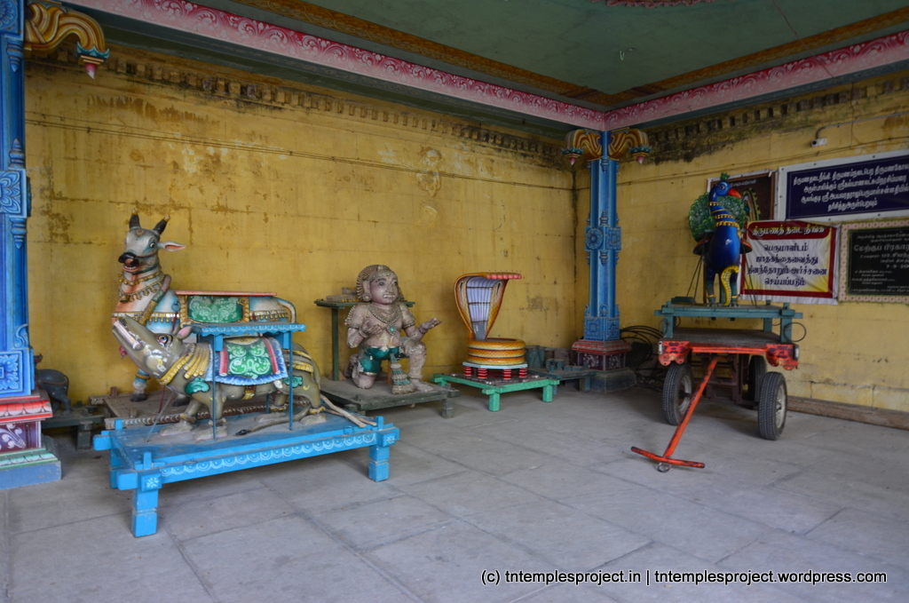 When one enters the temple, first is the Amman sannidhi, followed by Lord Siva’s sannidhi and then Dakshinamoorthy (on the south wall / koshta), following the traditional theme of mata, pita, guru.