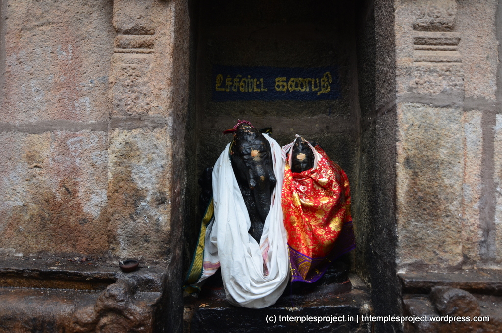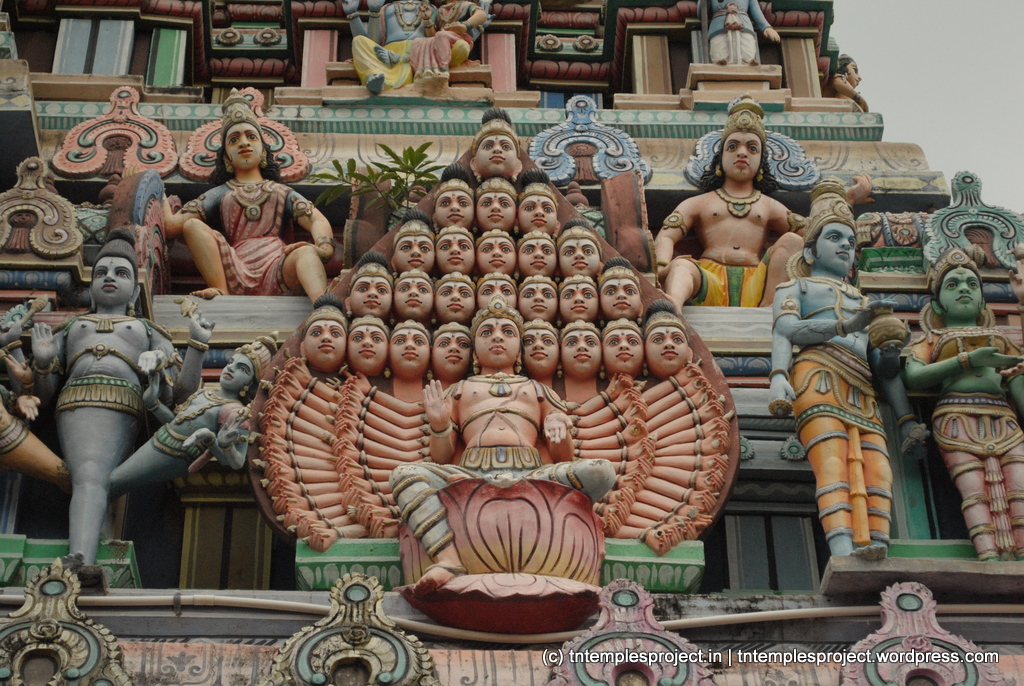 பிரதான கோபுரத்தின் உள் பக்கத்தின் கீழ் வலதுபுறத்தில், சிவனின் 64 வடிவங்களின் இரண்டு தனித்துவமான பிரதிநிதித்துவங்களைக் காணலாம் – மகாசதாசிவம் (25 முகங்கள் மற்றும் 52 கைகள்); மற்றும் ஏக-பாத திரிமூர்த்தி, சிவனை ஒரு காலில் சித்தரிக்கிறார், பிரம்மாவும் விஷ்ணுவும் இருபுறமும் வெளிப்படுகிறார்கள். காசியைப் போலவே, கணநாதராகிய சிவன் பலிபீடத்தின் வடிவத்தில் வசிப்பதாகக் கூறப்படுகிறது.