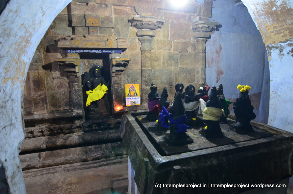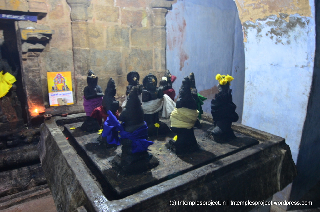 நவக்கிரகங்களின் சன்னதி தட்சிணாமூர்த்திக்கு முன்னால் உள்ளது, மேலும் பக்தர்கள் கிரஹதோஷத்துடன் இரு தெய்வங்களுக்கும் பிரார்த்தனை செய்கிறார்கள்.