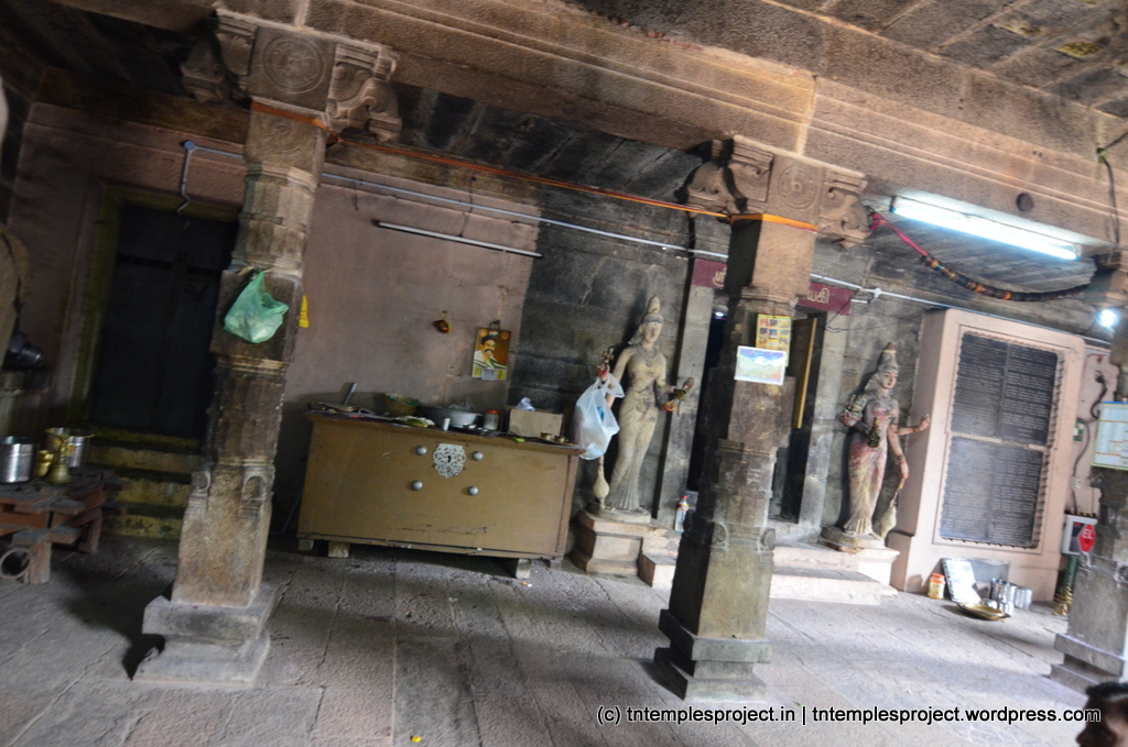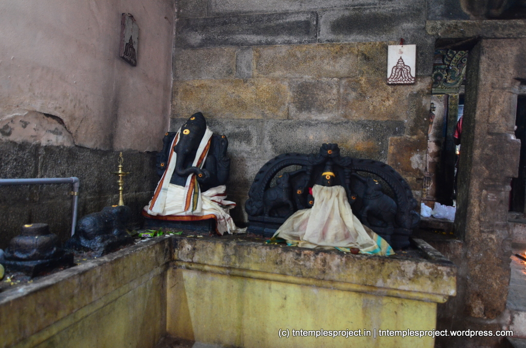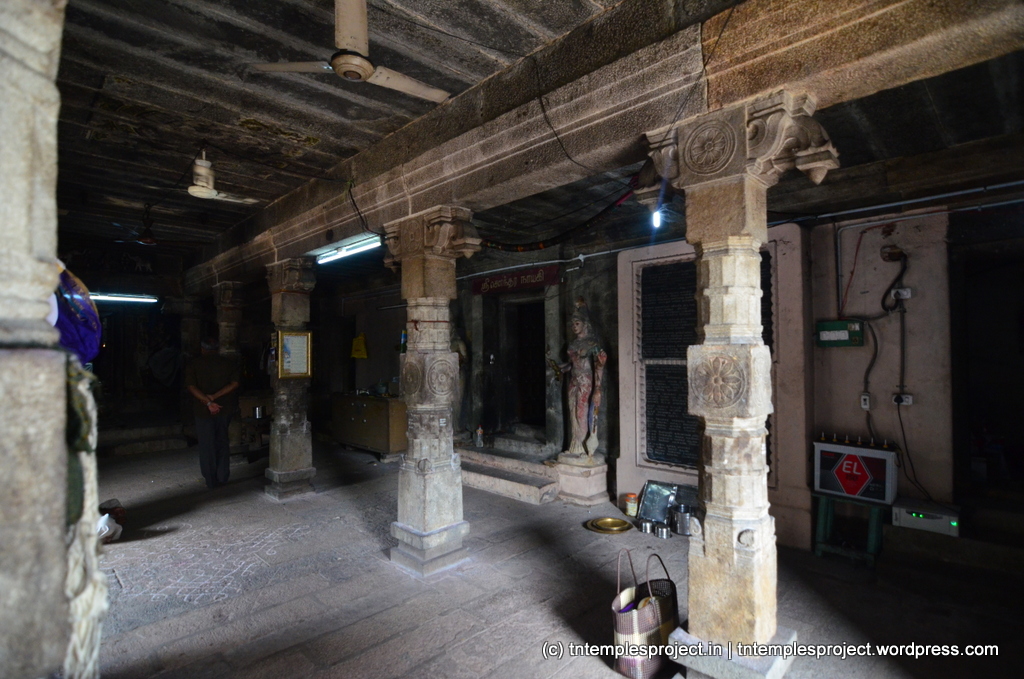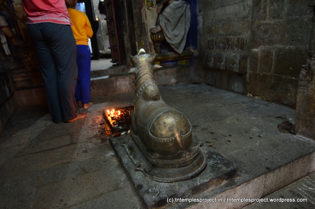 Though this is a Chola temple as is evident from the overall structure, the fact that it is quite ancient is clear from the lack of carvings on the pillars and outer walls of the mandapams and garbhagriham. Having said that, the simplicity of the temple’s architecture is extremely pleasing. Many of the murtis and shrines are additions made well after the original temple was constructed. Another rare aspect is the Nandi made of bronze, rather than stone, at the entrance to the garbhagriham. This Nandi, of course, is a later addition.