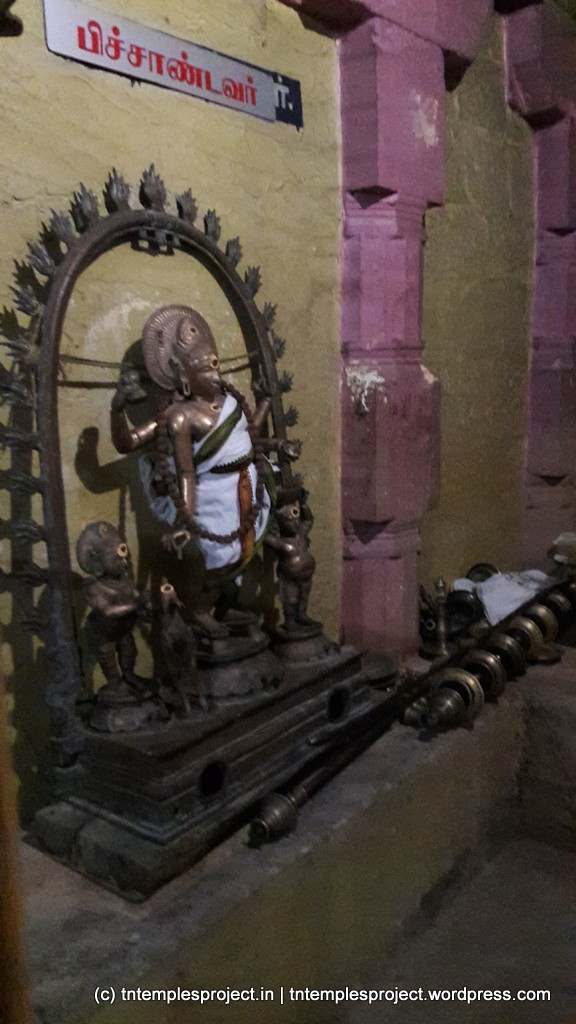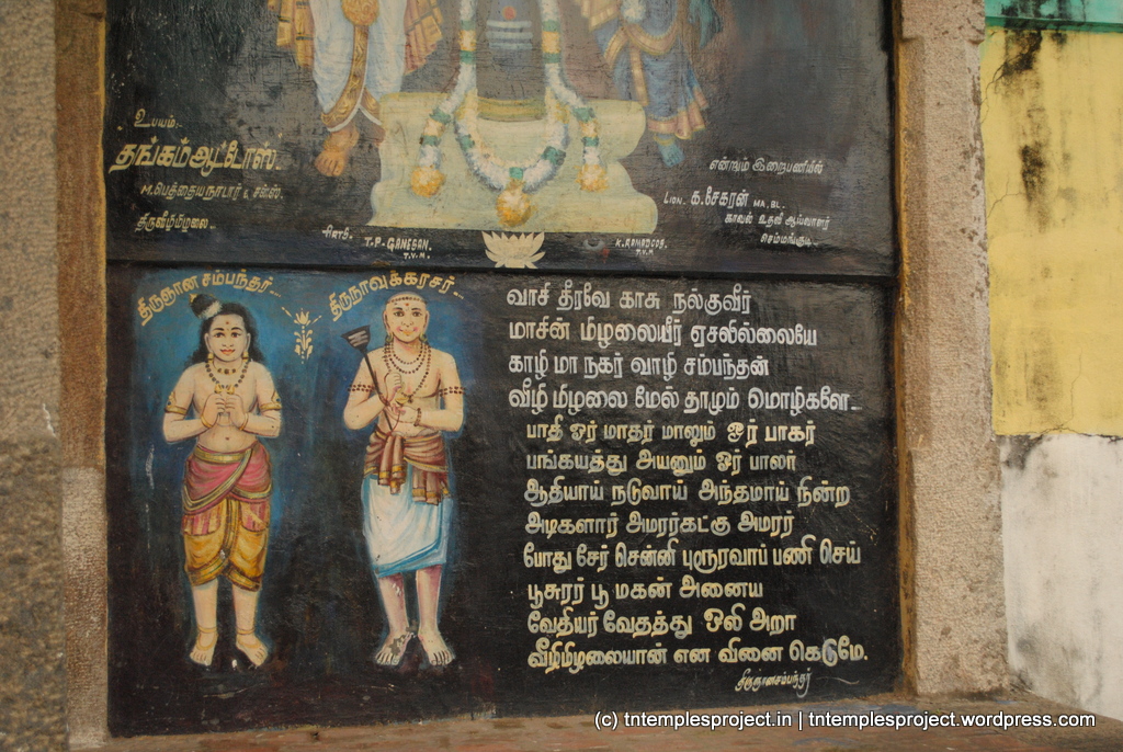 அப்பரும் சம்பந்தரும் இங்கு வந்தபோது, இப்பகுதியில் மிகவும் மோசமான வறட்சி மற்றும் பஞ்சம் ஏற்பட்டது. உள்ளூர் மக்களுக்கு உணவளிக்க உதவுவதற்காக, இரண்டு துறவிகளும் சிவனை வணங்கினர், ஒவ்வொரு நாளும் அவர்களுக்கு ஒரு தங்க நாணயத்தைக் கொடுங்கள், அதை உள்ளூர் மக்களுக்கு உதவுங்கள். மகாமண்டபத்தின் முன் ஒரு பீடத்தில் சம்பந்தர் தனது நாணயத்தைப் பெற்றபோது, அப்பர் கோயிலின் மேற்குப் பகுதியில் உள்ள ஒரு பீடத்தில் தனது நாணயத்தைப் பெற்றார். தனது செலவில் சிறிது வேடிக்கை பார்க்க, சிவன் அப்பருக்கு வழங்கப்பட்டவற்றுக்கு தரம் குறைந்த சம்பந்தர் நாணயங்களை வழங்கினார். சம்பந்தர் சிவனிடம் பதிகம் (வாசி தீரவே, காசு நல்குவீர்) பாடி அதே தரமான நாணயங்களைக் கேட்டார், இது சிவனை மகிழ்வித்தது, மேலும் சிறந்த நாணயங்களைப் பெற்றது. இரண்டு துறவிகளும் உள்ளூர் மக்களுக்கு உணவு விநியோகம் செய்த மடம் வடக்கு கார் தெருவில் (வடக்கு தேரோடும் வீதி) அமைந்துள்ளது. இந்த அத்தியாயத்தின் போது, சம்பந்தர் தனது சொந்த ஊரான சீர்காழியில் இறைவனைக் காண விரும்பினார். சிவன் குழந்தை துறவியை விண்ணிழி விமானத்தில் ஏறச் சொன்னார், அங்கிருந்து இறைவன் சீர்காழியில் தோணியப்பரைக் கண்டார்.