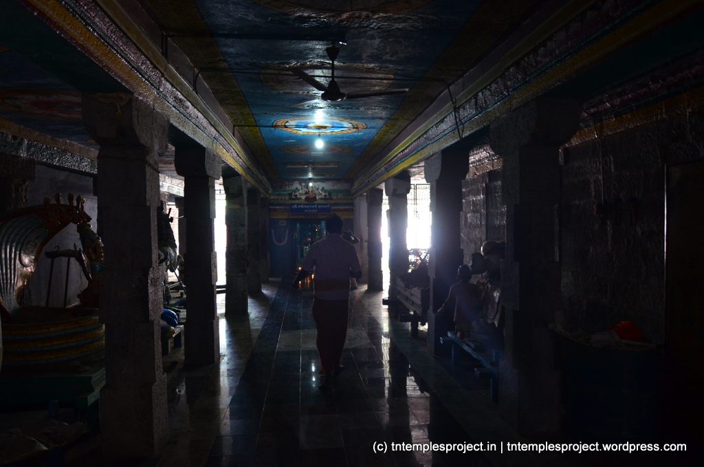 This is only one of two Divya Desams (the other being at Srirangam) where devotees can worship Thirumana Pillars on either sided of the lord inside the Sanctum.