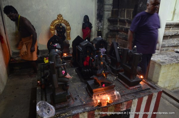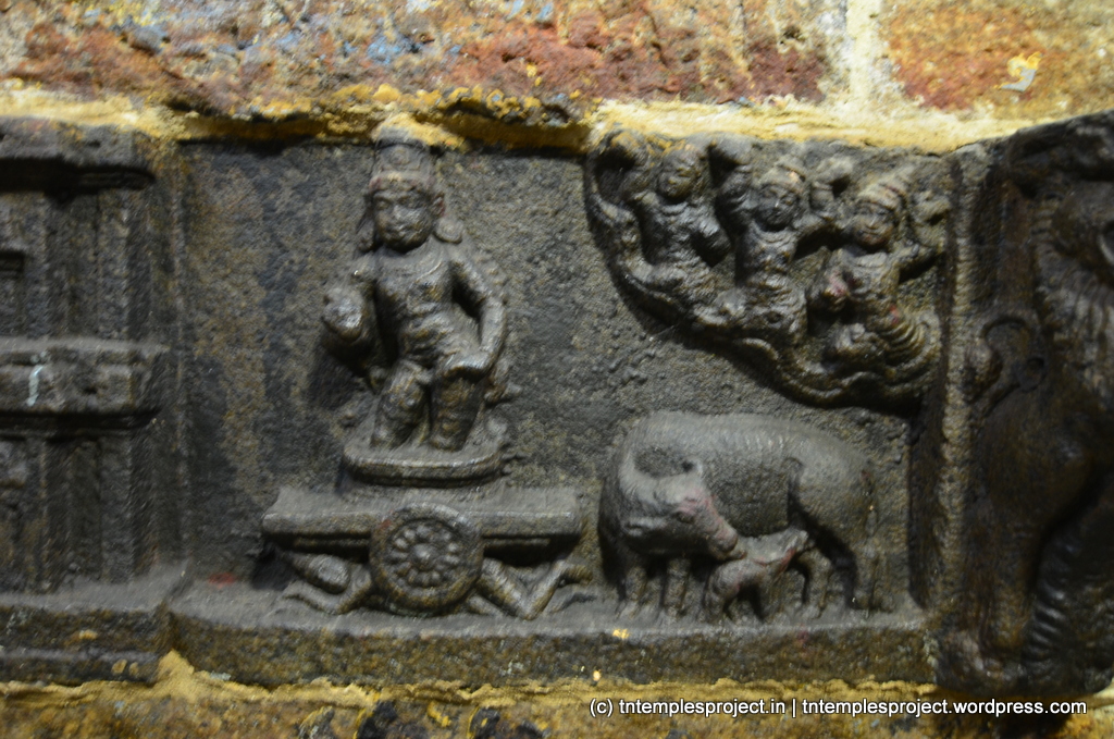 மூலவர் லிங்கத்தின் மேல் நீர் துளிகள் போல் தோன்றுவது சிவபெருமானின் முடியிலிருந்து கங்கை வெளிப்பட்ட கதையின் அடையாளமாக உள்ளது. இங்கே பார்வதியின் பெயருக்கு ஏற்ப, விளையாட்டுத்தனமான தோரணையில் சித்தரிக்கப்படுகிறாள். இங்குள்ள விநாயகர் ஒரு சுயம்பு மூர்த்தி என்று கூறப்படுகிறது, மேலும் இந்த மூர்த்தியில் விநாயகரின் பல சிறிய உருவங்கள் உள்ளன, அவருக்கு கோடி-விநாயகர் என்று பெயர் வழங்கப்பட்டது. முருகன், அவரை அறிந்தவர்இங்கு கோடி சுப்ரமணியர் என்றழைக்கப்படும் முருகன், தன் துணைவிகளுடன் தனி சன்னதியுடன் உள்ளார். இங்குள்ள நவக்கிரகம் சன்னதி குறிப்பாக குறிப்பிடத்தக்கது, ஏனெனில் அனைத்து கிரக தெய்வங்களும் அந்தந்த வாகனங்கள் / வாகனங்களுடன் சித்தரிக்கப்பட்டுள்ளன. கோவிலில் பல வேலைப்பாடுகள் மற்றும் மூர்த்திகள் உள்ளன, பல்வேறு புராணங்களை சித்தரிக்கிறது, மனுநீதி சோழன் ஒரு குற்றத்திற்காக தனது சொந்த மகனுக்கு மரண தண்டனை விதித்து நீதி வழங்கியவர் உட்பட.