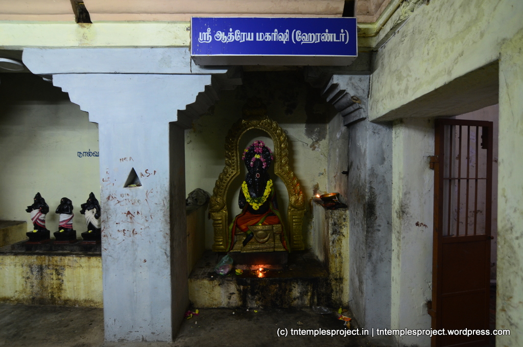 திருவலஞ்சுழியில் உள்ள கபர்தீஸ்வரர் கோயிலின் ஸ்தல புராணத்தில், மன்னன் ஹரித்வாஜனுக்கு ஹெரண்டர் முனிவர் உதவினார், அவர் உலகைக் காப்பாற்றுவதற்காக, பூலோகத்திலிருந்து படலம் வரை தோன்றிய துளைக்குள் தேனீ வடிவில் நுழைந்தார். முனிவர் கொட்டையூரில், இங்குள்ள ஆமணக்கு மரத்தடியில் வழிபாடு செய்தார், இது சமஸ்கிருதத்தில் “ஹெரண்டா” என்று அழைக்கப்படுகிறது, இது முனிவருக்கு அவரது பெயரைக் கொடுத்தது.