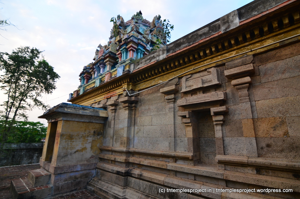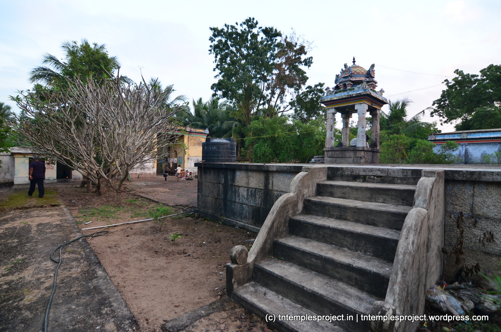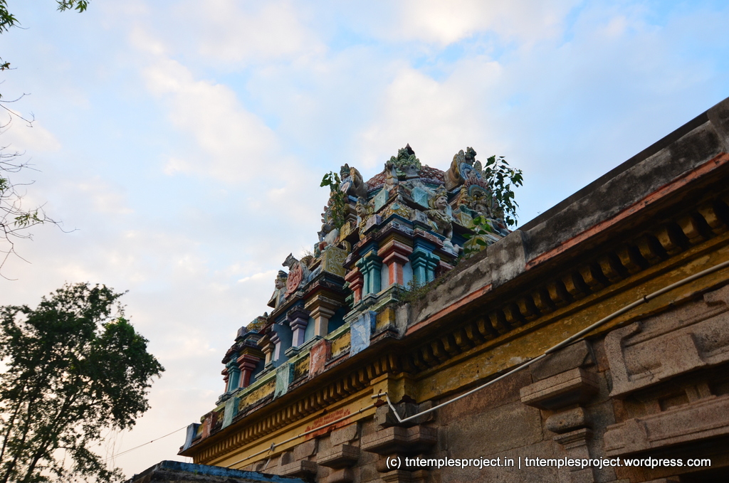 This temple is one of the 78 maadakoil temples built by Kochchenga Cholan. The temple is revered in the Tevaram as well as the Tiruvasagam. The temple’s architecture and construction clearly shows it to be a maadakoil. Furthermore, unlike other maadakoils where the entrance to the mahamandapam is through steps on the front or the side, here the main temple itself is built on an elevated platform. The sub-shrines are at ground level. The structural temple is from the Chola period. As this is one of the Navagraham temples, as noted earlier, there is no separate Navagraham shrine at this temple.