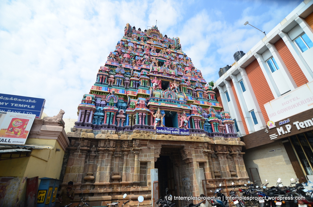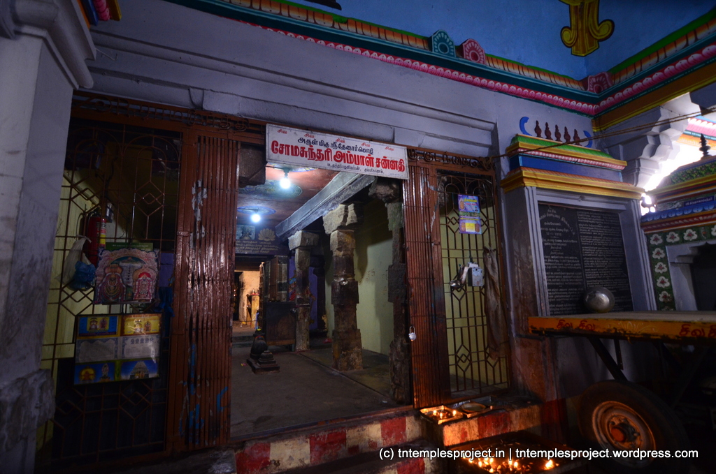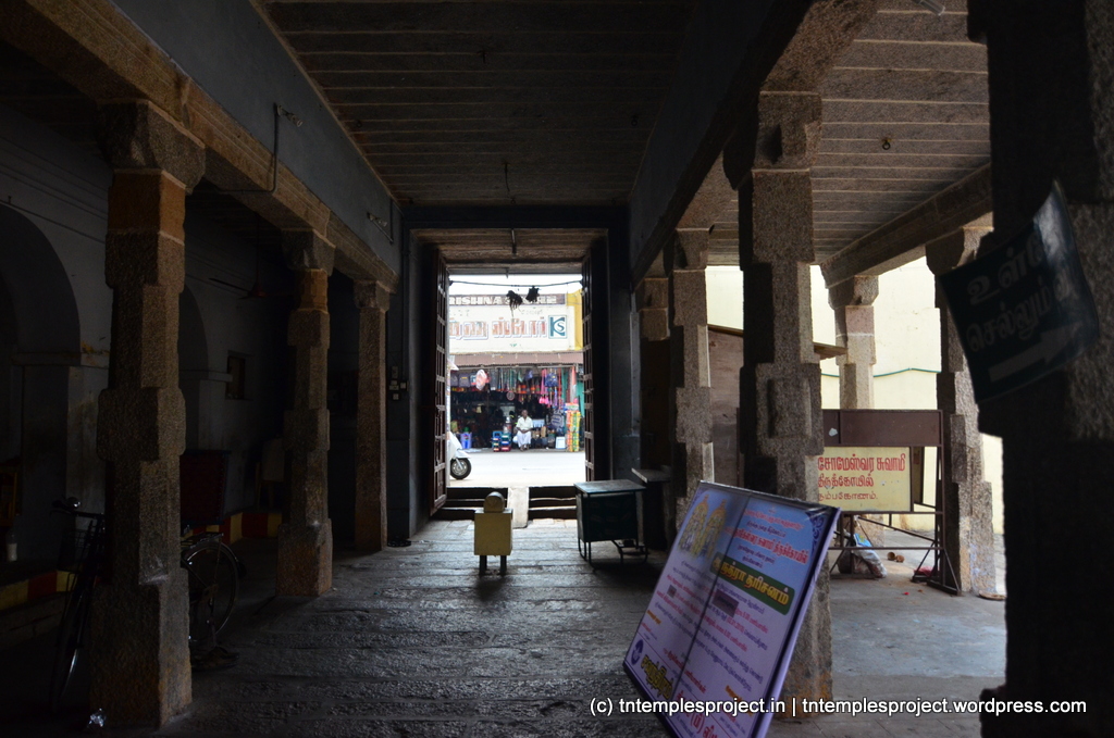 கோவிலுக்கு மூன்று நுழைவாயில்கள் உள்ளன, அவை ஒவ்வொன்றும் கோயிலில் வெவ்வேறு தெய்வங்களாக வழிபடப்படும் சிவனுக்கு வழிவகுக்கும். ஒருவர் கிழக்கிலிருந்து (ராஜகோபுரம் வழியாக) நுழைந்தால், முதலில் வழிபடப்படும் தெய்வங்கள் மலீசர் மற்றும் மங்கள நாயகி. தெற்கே நுழைந்தால் சோமநாதர் மற்றும் தேனார்மொழியம்மை சன்னதிகளுக்கும், வடக்கிலிருந்து நுழைந்தால் சோமேஸ்வரர் மற்றும் சோமசுந்தரி சன்னதிகளுக்கும் செல்கிறது.