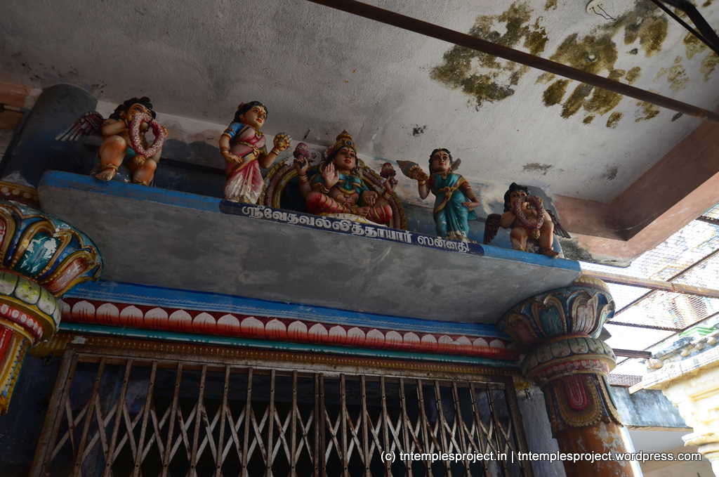 The temple has a separate shrine for Brahma, with his consorts Saraswati and Gayatri. There is a separate shrine for Yoga Narasimhar opposite the Brahma shrine.