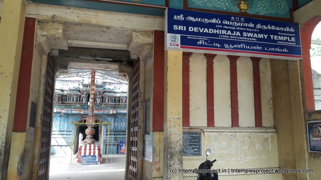 Therazhundur (which is the correct name, though it has been corrupted as Therezhundur lately), in Tamil, simply means the place where the chariot was grounded (ther=chariot, azhundu=grounding, ur=place). There are many similar stories about how this place got its name, all related to a king called Uparicharavasu (named Vasu, and the prefix Uparichara refers to his flying chariot. In Sanskrit, upari = over / above, and chara = move)…