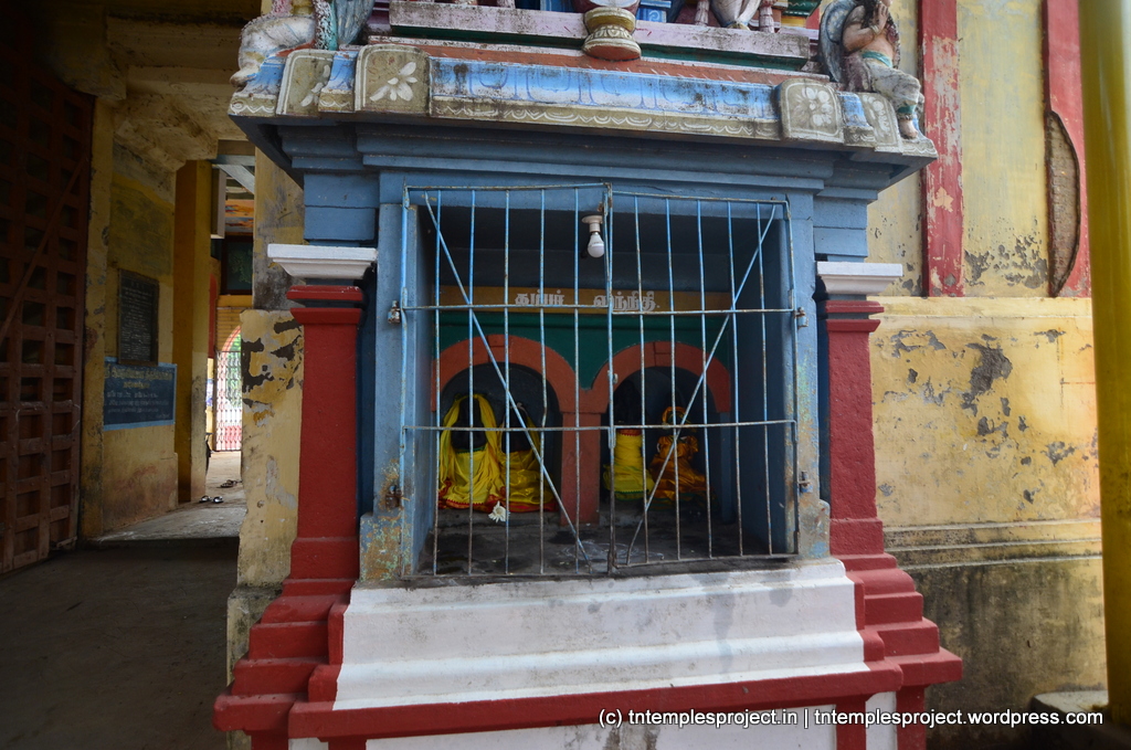 Sage Agastyar wanted to marry the Kaveri river, but she refused. The sage cursed her that wherever she went, trouble with follow. Kaveri worshipped Vishnu here and was relieved the curse. Therazhundur is also the birthplace of the poet Kambar, who authored the Tamil Ramayanam, and who has a separate shrine here.