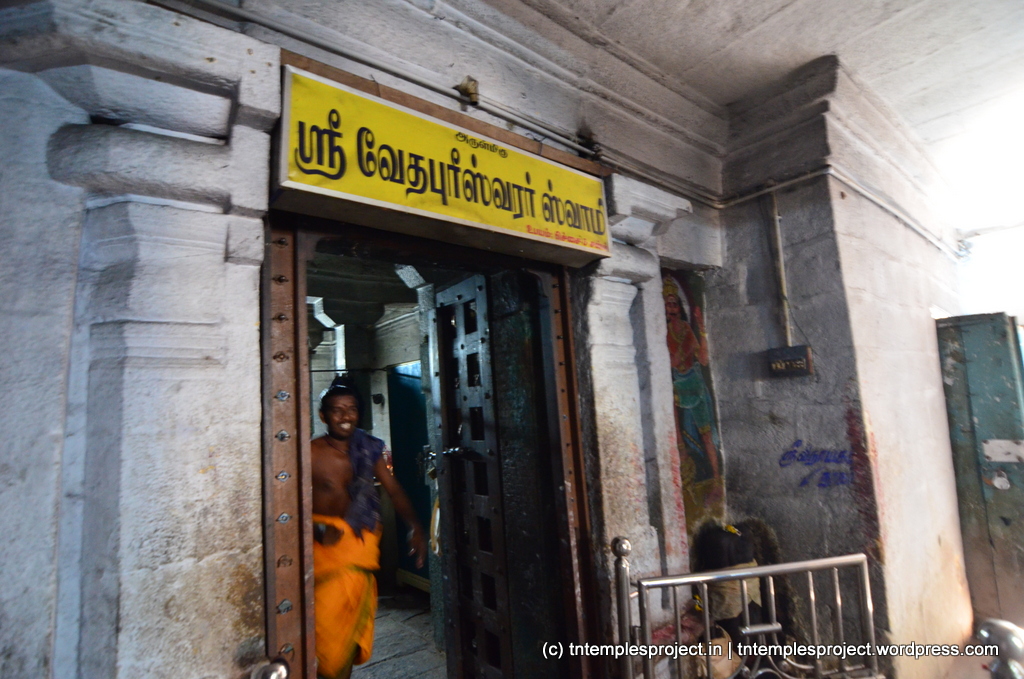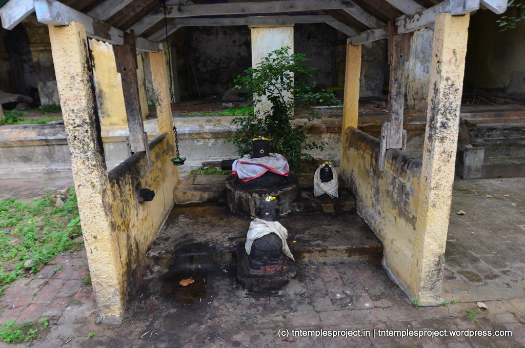Adjacent to the sthala vriksham is a shrine for “Kshetra Lingam” – possibly one of the eight lingams installed by the ashta digpalakas, which also has murtis of Nandi and Vinayakar. Another of the eight Lingams is the separate shrine for Madeswarar (with Madeswari) in the outer prakaram. There is one belief that the shrine for Madeswarar and Madeswari was the original temple at this place, and the other shrines, including the moolavar Vedapureeswarar, came later.