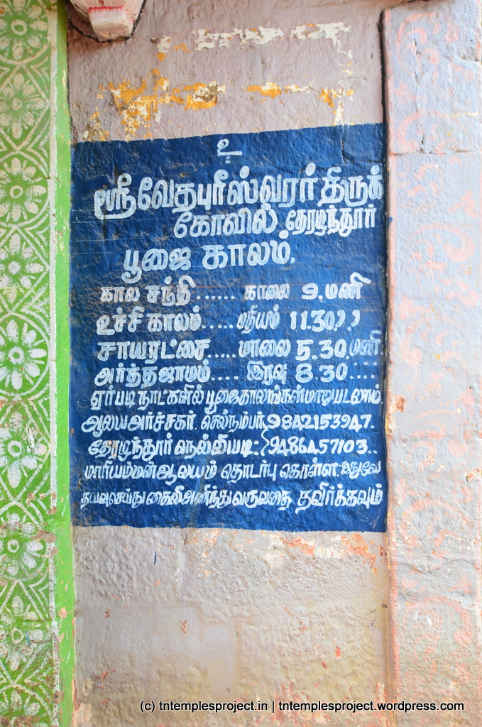 Therazhundur has two temples – this temple and the nearby Devadiraja Perumal temple, which is located about a kilometre down the road in front of this temple. So, when Sambandar came to this village, he was confused as to which one was the Siva temple. At that time, Vinayakar came and provided directions to Sambandar, and so Vinayakar here is called Gnanasambandar Pillaiyar or Vazhikaatti Vinayakar.