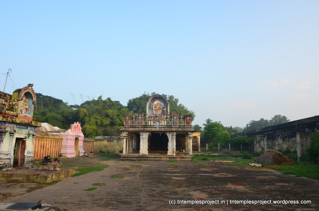 நந்தி மண்டபம், அதைத் தொடர்ந்து தீர்த்தம், அதற்கு அப்பால் உள்ள கோயில்