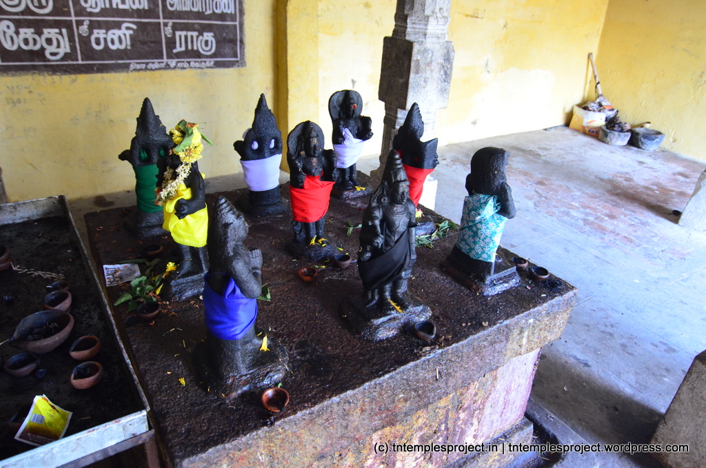 இந்தக் கோயிலில் மிகவும் தனித்துவமான நவக்கிரஹம் சன்னதி உள்ளது. குரு சனியை நோக்கி இருக்கிறார் (அவர்கள் ஒருவருக்கொருவர் கருணை காட்டுகிறார்கள்), எனவே இந்த இடம் ஒரு கிரஹமித்ர ஸ்தலம் என்று குறிப்பிடப்படுகிறது. இங்கு மற்றொரு சுவாரஸ்யமான அம்சம் என்னவென்றால், தீர்த்தம் நந்திக்கும் மூலவருக்கும் இடையில் வருகிறது. பெரும்பாலான கோயில்களில், இது முதலில் தீர்த்தம், அதைத் தொடர்ந்து நந்தி, பின்னர் மூலவர். தீர்த்தம் பஞ்ச முக தீர்த்தம் என்றும் அழைக்கப்படுகிறது, இது சிவபெருமானின் ஐந்து முகங்களைக் குறிக்கும் என்று கூறப்படுகிறது.