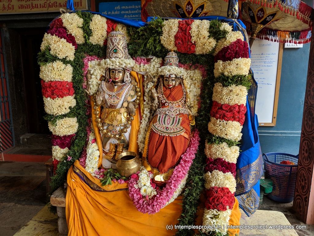 இங்குள்ள சிவன் உத்திர வைத்தியலிங்கேஸ்வரர் அல்லது உத்திர வைத்தியநாதர் (வடக்கைக் குறிக்கும் உத்திர) எனப் பெயரிடப்படுகிறார், ஏனெனில் இது தெற்கே உள்ள வைத்தீஸ்வரன் கோயிலுக்குச் சமமாகக் கருதப்படுகிறது. பெரும்பாலான கோயில்களில் சிவன் வைத்தியநாதர் இருப்பது போல, இங்குள்ள அம்மன் தையல் நாயகி.
