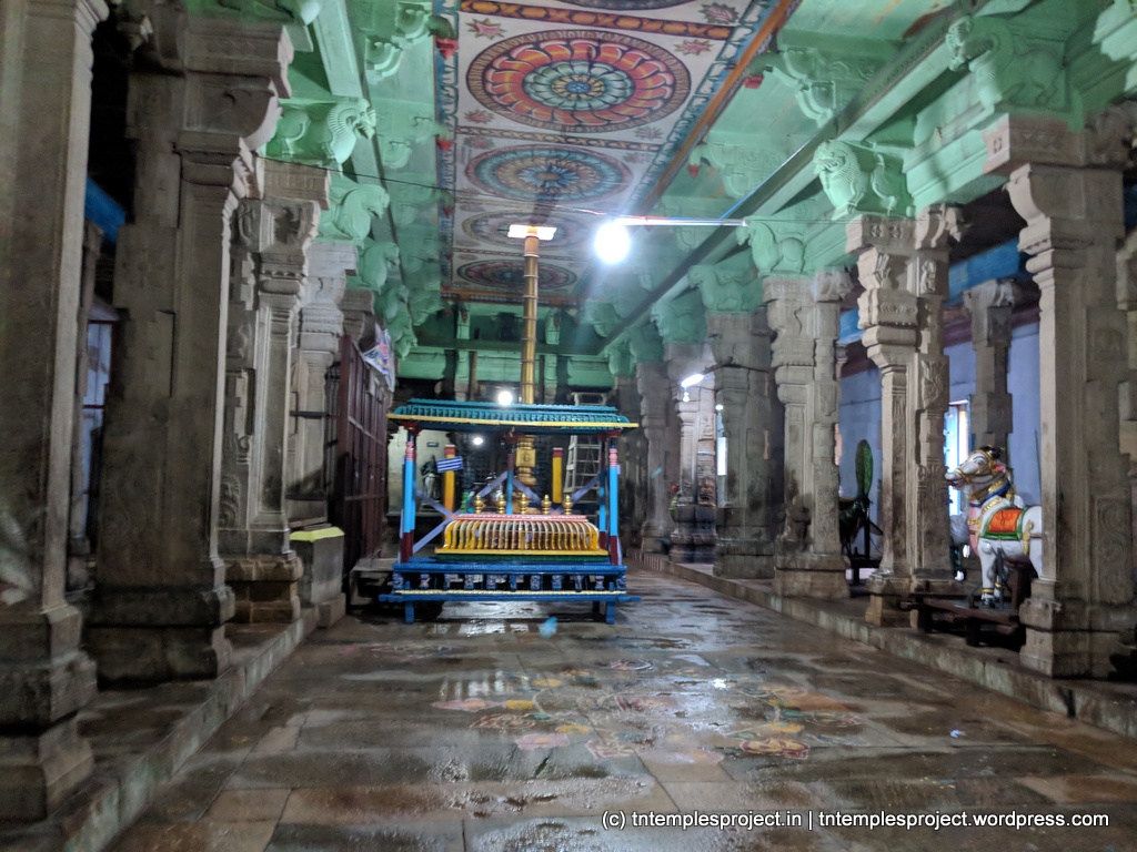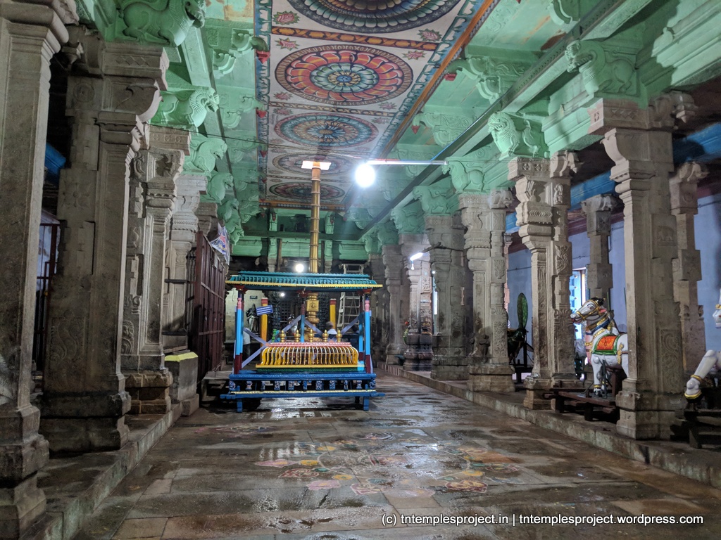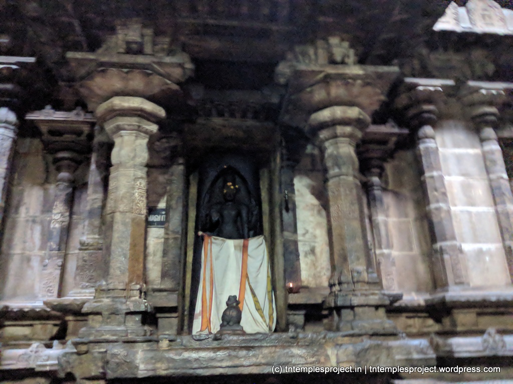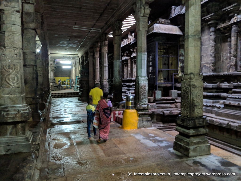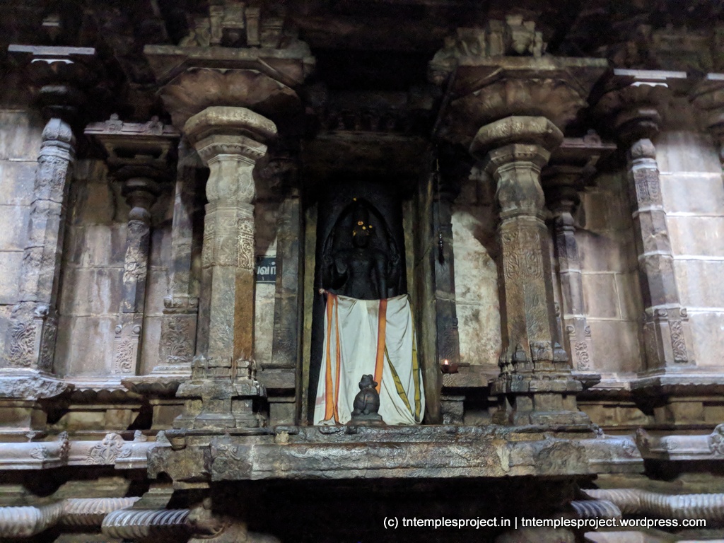 The temple would have existed in the 7th century, given that Sambandar has sung a pathigam here. However, the structural temple is clearly Chola, from across two centuries. The core temple is from the late 9th / early 10th century, built in the time of Aditya Chola I, while subsequent additions funded by Sembian Madevi are referred to in the inscriptions in the temple. These inscriptions also refer to various endowments from Aditya Chola for lighting of the temple’s lamps, and also to Uttama Chola’s grants for maintenance of this temple as well as the nearby Perumal temple. In recent times, the temple has been maintained and refurbished by the Nagarathar community.