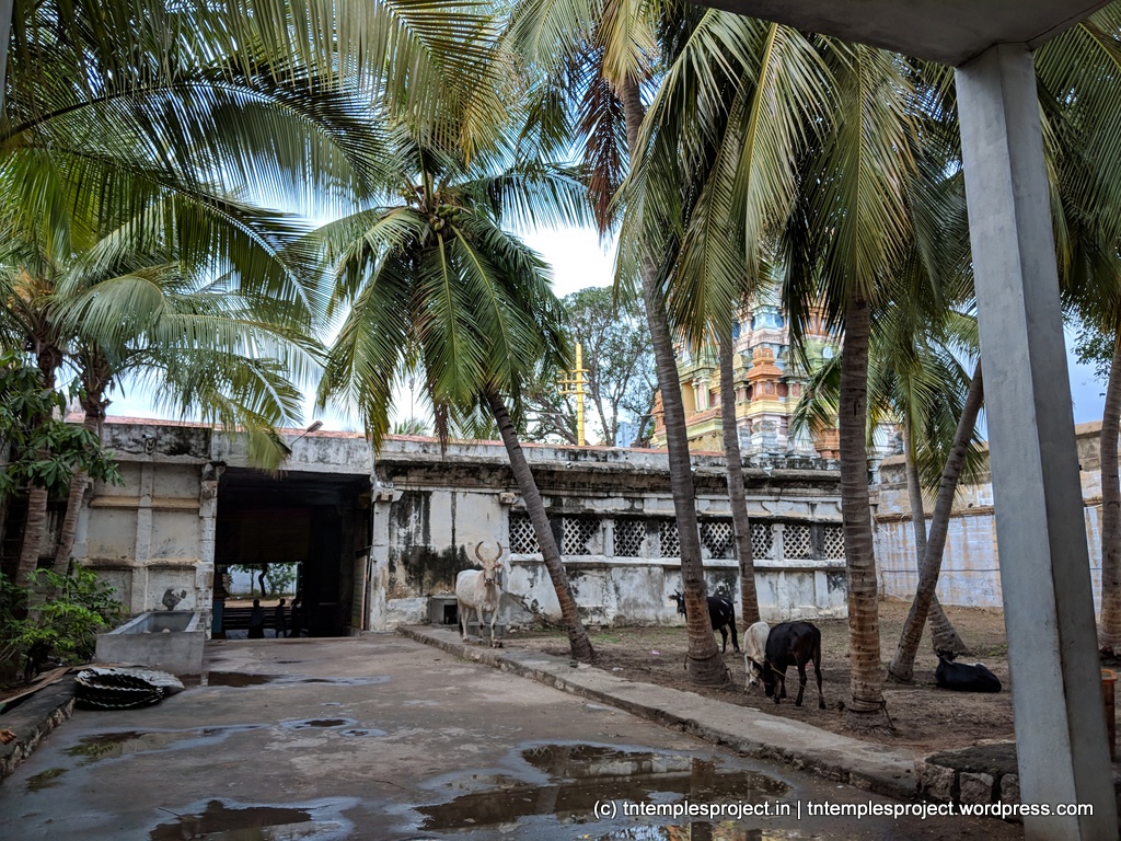This is one of the few temples where the Tevaram moovar – Appar, Sambandar and Sundarar – have all sung pathigams. It is said that the entire area surrounding the temple, up to the Vaigai river, was covered in Siva Lingams and so Appar stood on the opposite bank of the river and sang their pathigams from there. When Sambandar visited here, the Nandi was in the line of axis from where Sambandar was, and so it is said that Siva asked Nandi to move a little. Even today, Nandi can be seen slightly misaligned to the axial line from the garbhagriham.