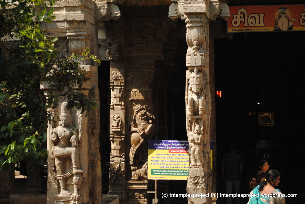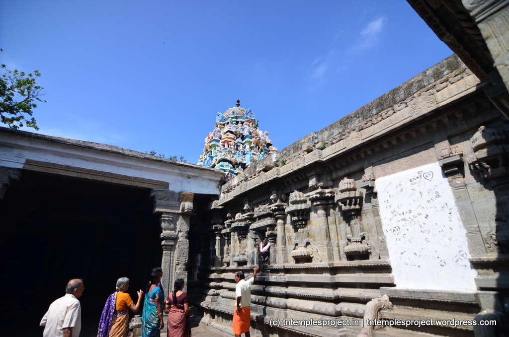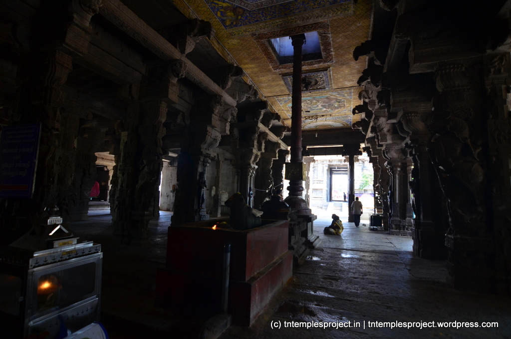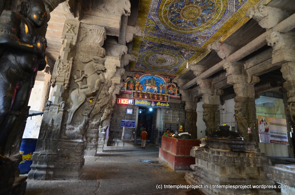 The kings joined forces to build this temple. (Several resources online and elsewhere say that the Chola king was Parantaka Chola and the Pandya guest was Maravarman Kulasekara Pandyan. However, this cannot be correct, since their respective timelines are separated by more than 300 years. Given the age of the temple and reading this with the other puranams and inscriptions, it appears that the Pandya king might indeed be Kulasekara Pandyan, but the Chola king – if at all there was one at that time – could have been only a local chieftain.)