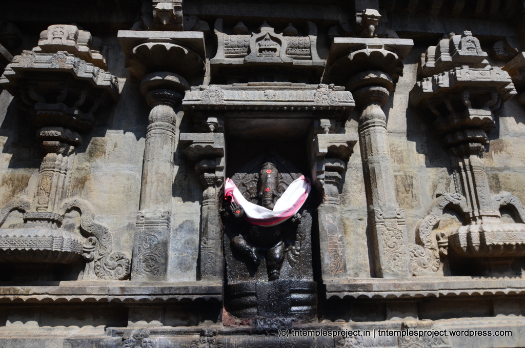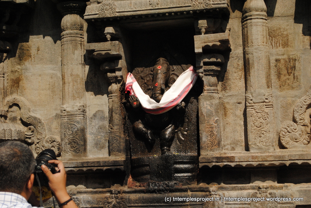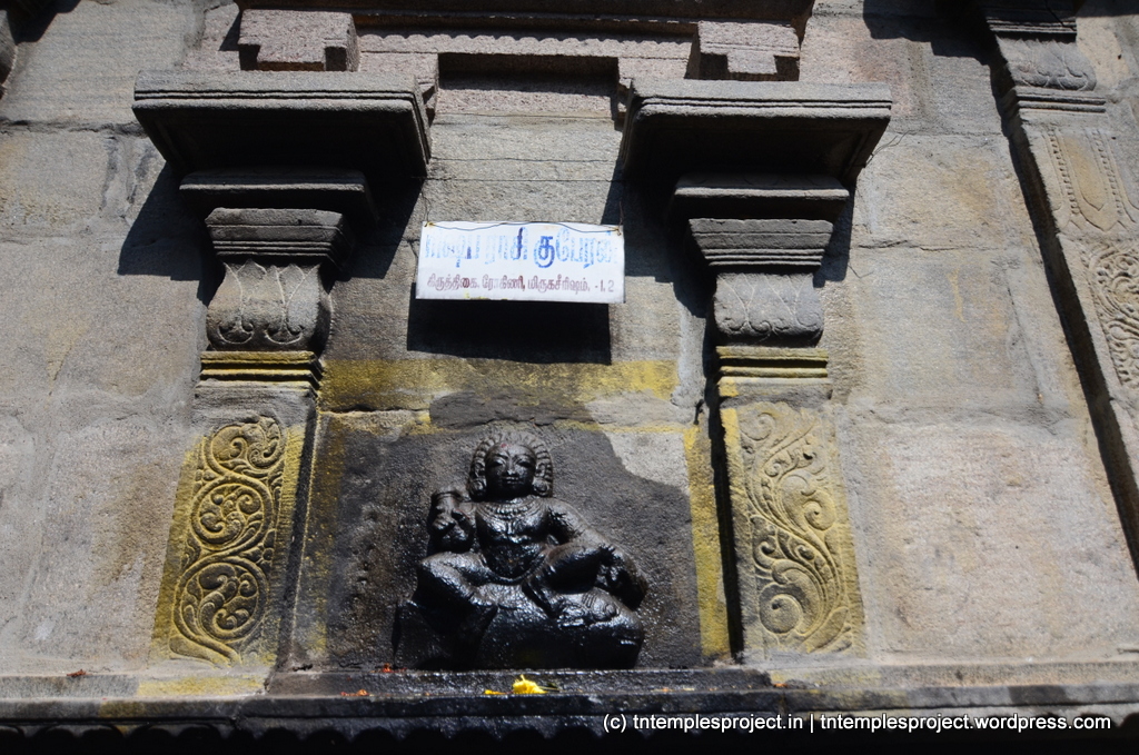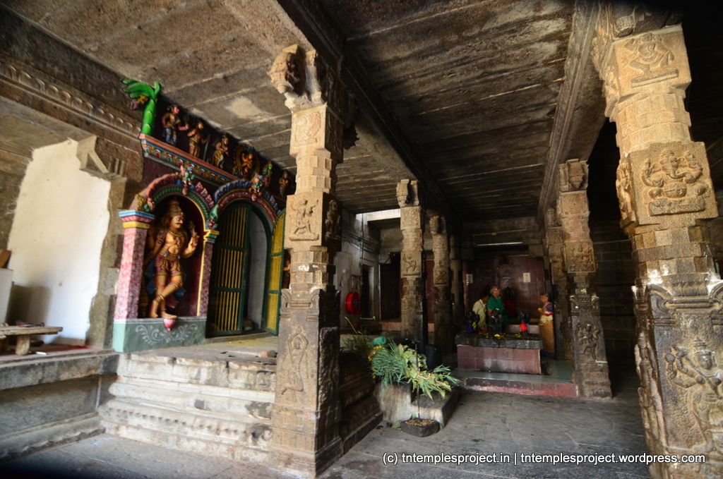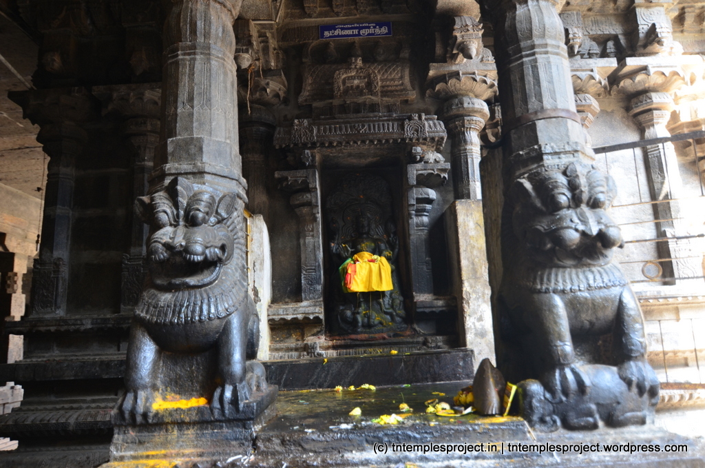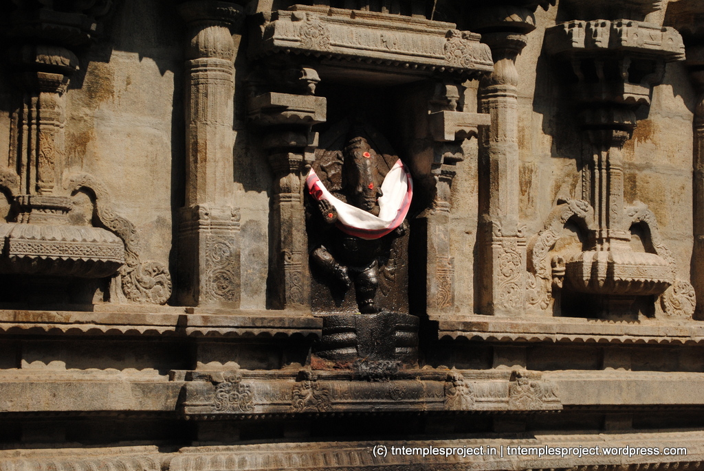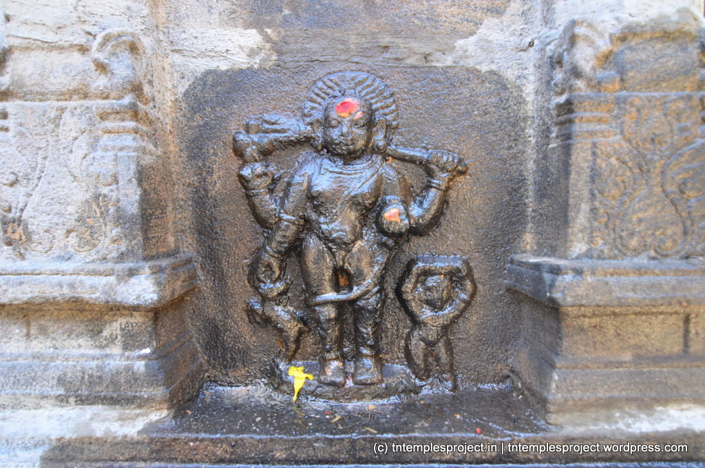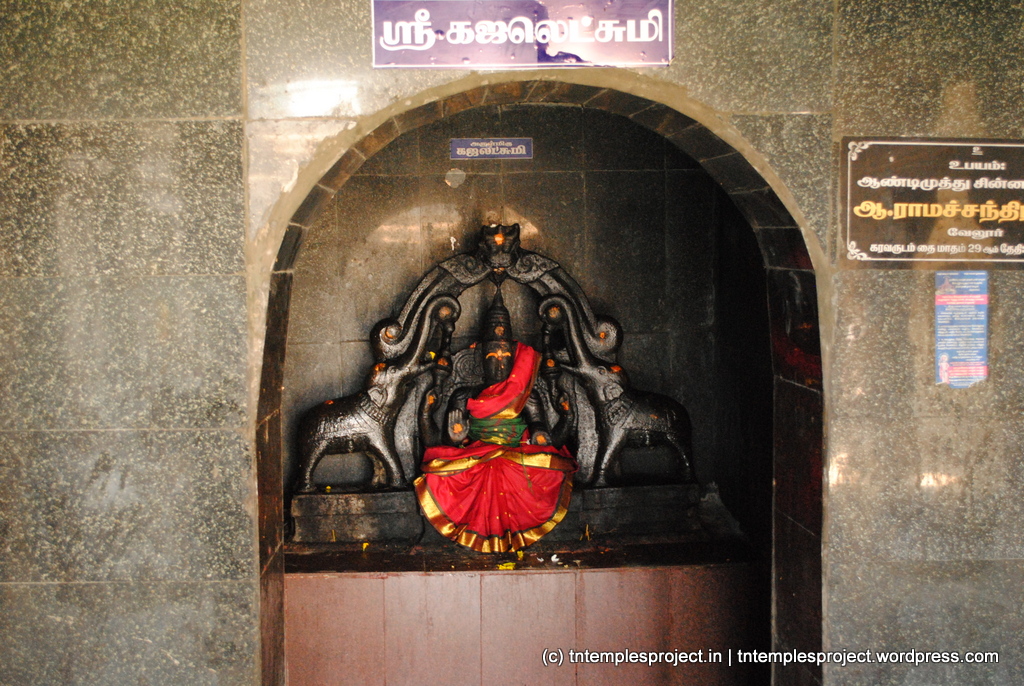 This is a Kubera sthalam, with 12 separate depictions of Kubera – one for each of the 12 rasis. These twelve bas relief sculptures are placed in such a manner that, viewed from above, they form the shape of OM. In a separate shrine, Kubera is seen with his wife Chitrakala on his vahanam, the fish, and also with sanganidhi and padmanidhi. It is believed that Kubera worshipped Siva and Parvati here, and was rewarded with four things:
