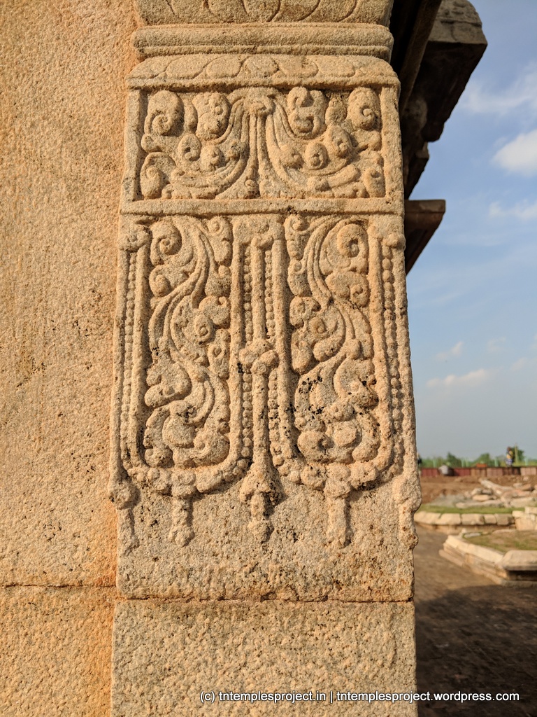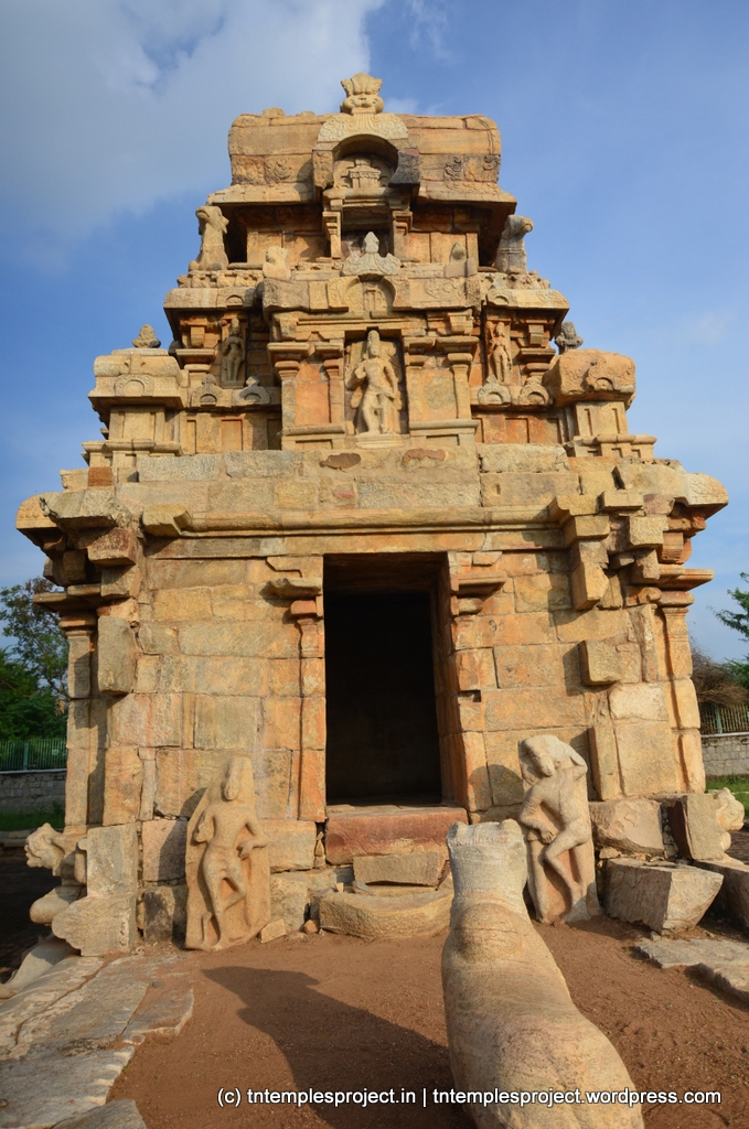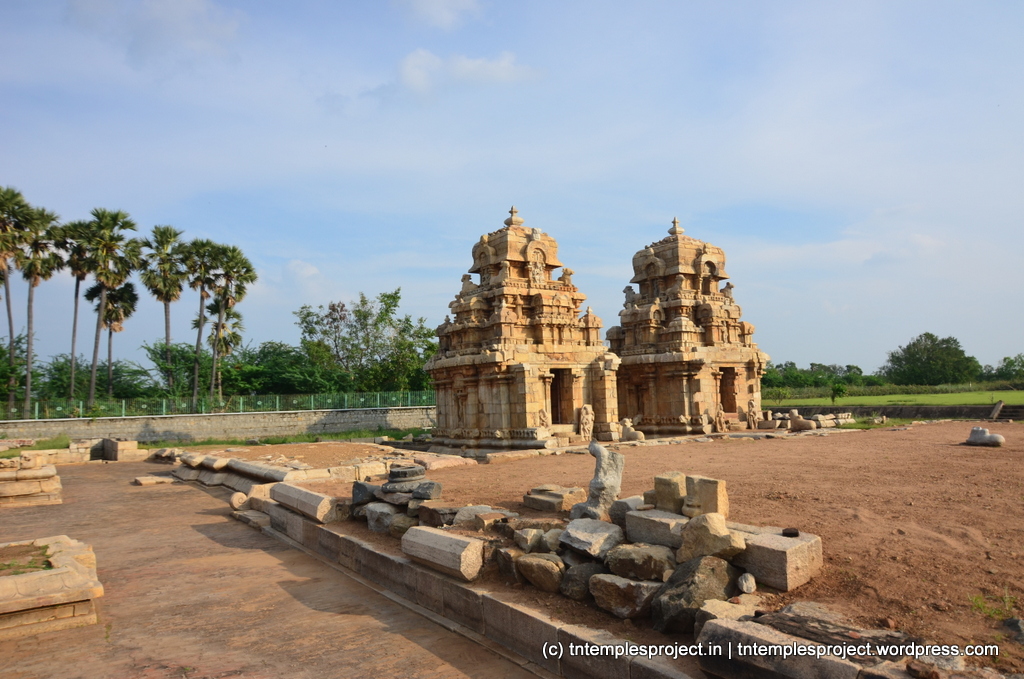 The northern shrine does not exist today, though its pedestal / adishtanam remains. The central and southern shrine are almost intact today, though there are clear signs of deterioration and possibly intentional destruction of some aspects of the architecture here. Each shrine was structured as a proper Siva temple by itself, with individual garbhagrihams, Nandis, dwarapalakas, vimanams, ardha-mandapams, etc. From the remains of the complex, it appears that they may have had a common maha mandapam.