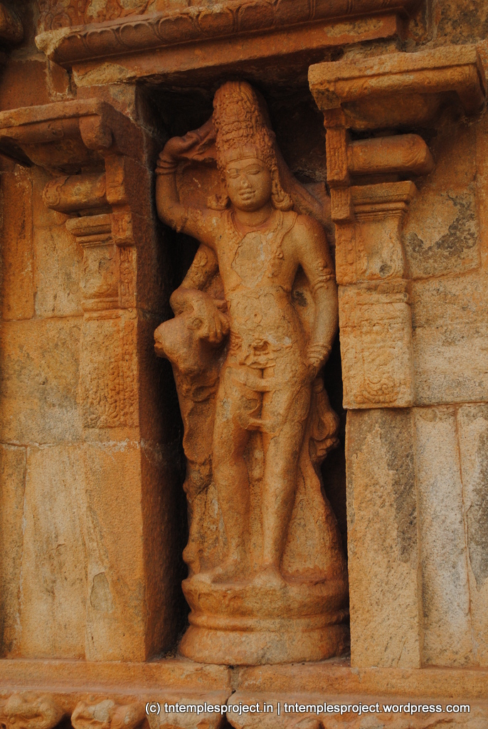 Carvings on the koshtam and the levels of the vimanam include representations of Siva as Ardhanareeswarar, Uma-Sahita murti (Parvati seated on Siva’s lap), Gangadhara, Kalari murti, Andhakasura, Veenadhara Dakshinamurti, Bhikshatanar, Gajasamharamurti, Tripurantakar, and Sankaranarayanar. There are also other deities such as Indra amongst the sculptures. These koshta sculptures are perhaps the finest remaining specimens of early Chola art.