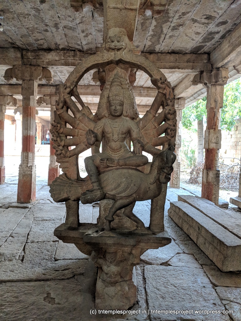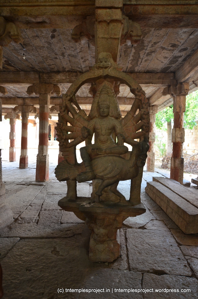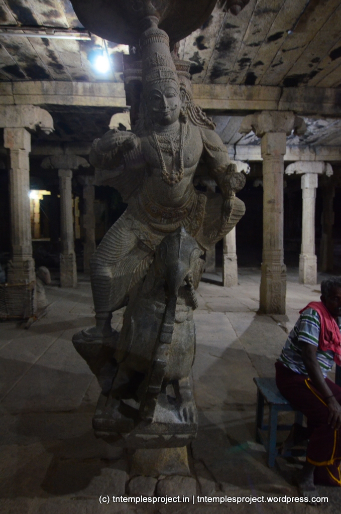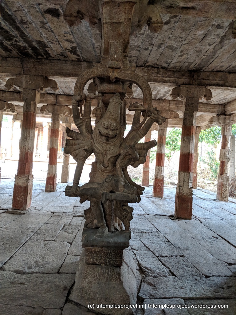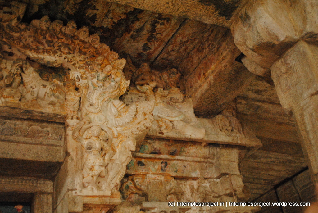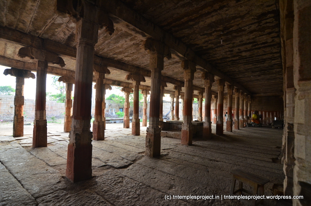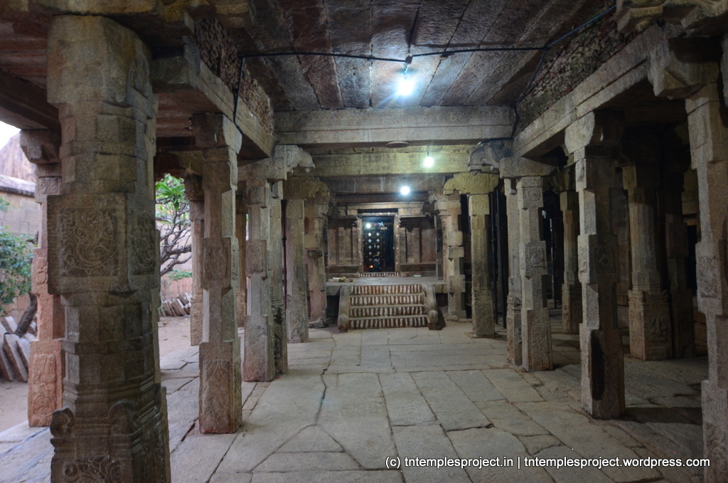 The inscription is believed to be from the time of the king Parama Maheswaran, a disciple of Rudracharyar. (Previously, because of the language and script, it was believed to be from the time of Mahendravarman I, but this is now disproved.) The mandapam has a huge bee-hive, and the bees are believed to protect the structure from miscreants. There is also a 4-foot tall Vinayakar on one side of this mandapam.