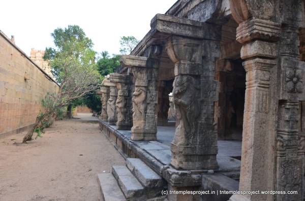 - In the middle: a tall mandapam with a rock panel inscription 14 feet in height, of a musical treatise, which mentions several ragams, etc (see end of this post, after the photo gallery).