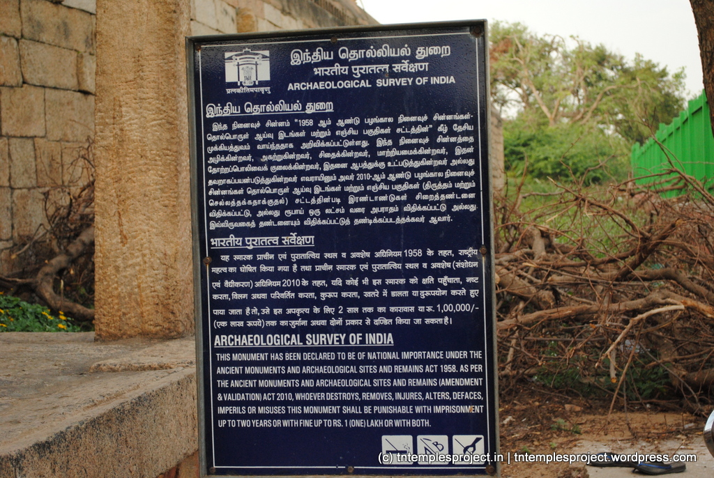 The temple is an ASI site, and there is a small ASI office to the right, at the entrance of the temple. Typically the officers here are very helpful, and often, without their approval, one cannot access the Tirumoolattanam shrine and the musical treatise inscription.