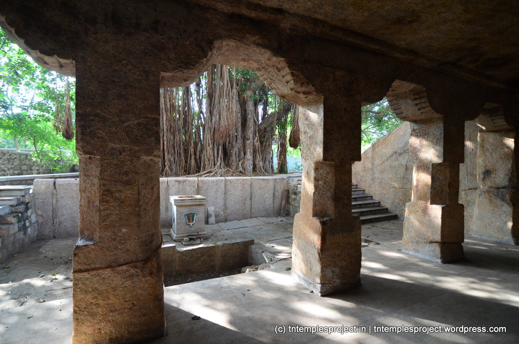 தென்மேற்கில் கோயில் சுவர்களுக்கு வெளியே அமைந்துள்ள கோயில் குளம், ஒரு ஸ்வஸ்திகாவைப் போல வடிவமைக்கப்பட்டுள்ளது. மையக் கிணறு இருந்தாலும், ஸ்வஸ்திகாவின் கைகளில் கிணற்றுக்குச் செல்லும் படிகள் உள்ளன. இந்த வடிவமைப்பு, ஸ்வஸ்திகாவின் எந்தக் கையிலும் உள்ள எவரும் வேறு எந்தக் கையிலும் இருப்பவர்களைப் பார்க்கக்கூடாது என்பதற்காகவே செய்யப்படுகிறது – அடிப்படையில், தனியுரிமை காரணங்களுக்காக. இந்தக் காரணத்திற்காக, இந்தக் குளத்தை பேச்சுவழக்கில் மாமியார்-மருமகள் குளம் (மாமியார், மருமகள் குளம்) என்று குறிப்பிடப்படுகிறது! பல்லவர்களின் காலத்தில், இந்தக் குளத்தை மார்பிடுகு கிணறு (மார்பிடுகு என்பது தந்திவர்ம பல்லவனின் அரச பட்டங்களில் ஒன்றாகும்) என்று அழைத்தனர். கி.பி 805 இல் கம்பன் அரையனால் கட்டப்பட்ட இந்த குளமானது, கி.பி 13 ஆம் நூற்றாண்டில் ஹோய்சாள ஆட்சியின் கீழ் அகற்றப்பட்டது.