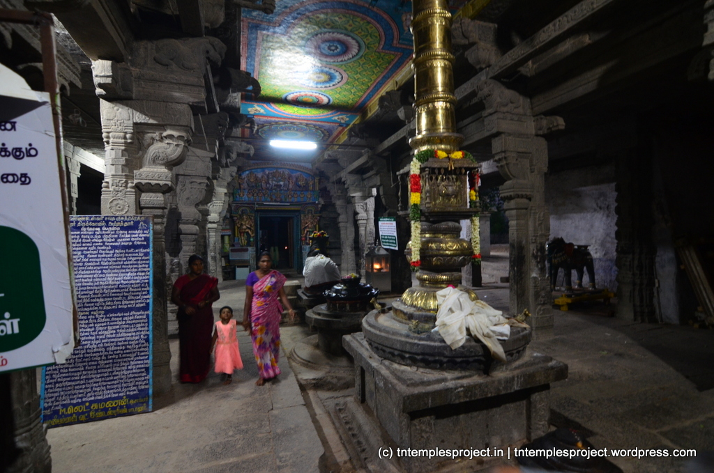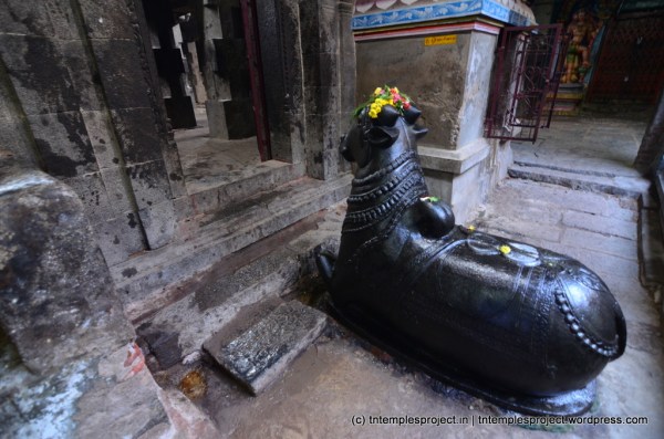 பாரதத்தின் ஏழு நதிகளில் (கங்கை, யமுனை, துங்கபத்ரா, சிந்து, சரஸ்வதி, காவேரி, நர்மதை) எது புனிதமானது என்ற கேள்வியைத் தீர்க்க, சிவன் நந்தியிடம் ஏழு நதிகளிலும் உள்ள தண்ணீரைக் குடிக்கச் சொன்னார். நந்தி கிழக்கு நோக்கிப் படுத்து, தண்ணீரைக் குடிக்கத் தொடங்கினார், அதன் முடிவில், கங்கை நதியின் நீர் மட்டுமே கோயிலுக்குக் கிழக்கே நந்தி ஆறு என்று அழைக்கப்படும் ஒரு தனி நதியாகக் கொட்டியது. இந்த கோவிலில் 2 பெரிய நந்திகள் உள்ளன – ஒன்று கிழக்கு நோக்கி (நந்தி ஆருக்கு மரியாதை செய்யும்), மற்றொன்று சிவனை நோக்கி. நந்தி ஆறு இப்போது இல்லை, ஆனால் கொள்ளிடம் ஆற்றில் கலக்கும் ஒரு மாய நதி என்று நம்பப்படுகிறது.