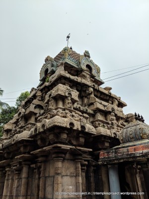 இந்தக் கோயிலின் த்விதால விமானம் (அதாவது, இரண்டு நிலைகளைக் கொண்டது) ஒரு பிரமிடு கூரையுடன் கூடிய குகைகளைக் கொண்டுள்ளது. விமானத்தின் நான்கு பக்கங்களிலும் உள்ள வட்டத் தண்டுகளிலிருந்து (சிலபாரத்தினத்தில் விருத்த ஸ்பூதிகா என்று அழைக்கப்படுகிறது, கட்டிடக்கலை மற்றும் உருவப்படம் பற்றிய ஒப்பந்தங்கள்) கோயிலின் வயது மற்றும் பழமை தெளிவாகிறது. மிகச் சில கோயில்களில் இந்த வடிவமைப்பு உள்ளது – குறிப்பாக, கொடும்பளூரில் உள்ள மூவர் கோவில், நார்த்தமலையில் உள்ள விஜயாலய சோழீஸ்வரம், திரிபுவனத்தில் உள்ள கம்பஹரேஸ்வரர் கோயில் மற்றும் திருப்புத்தூரில் உள்ள திருத்தளிநாதர் கோயில்.