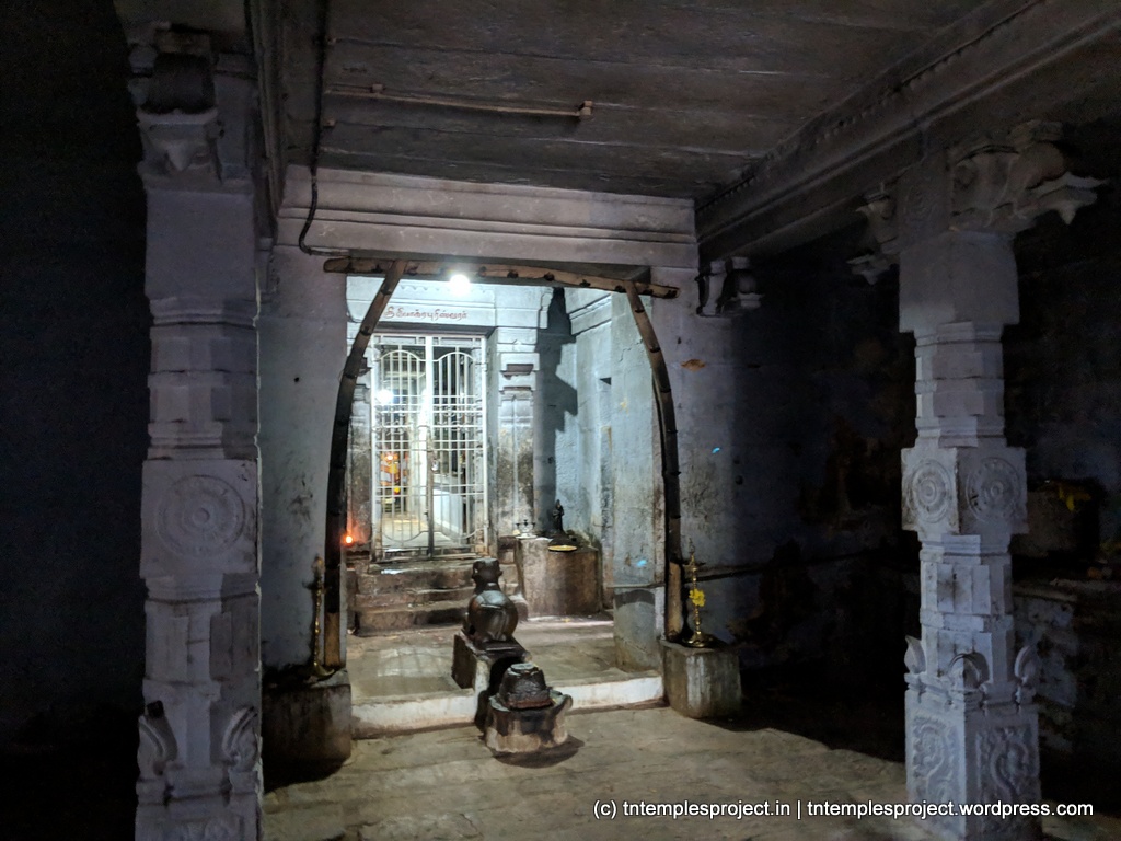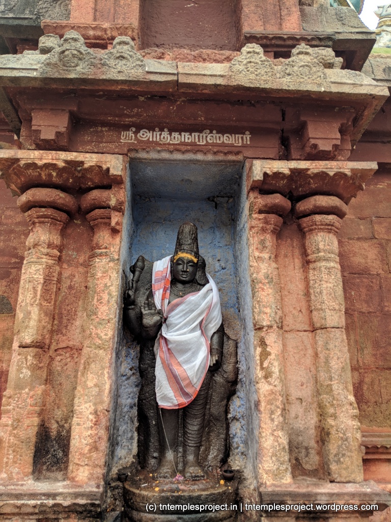 கர்ப்பகிரஹத்தின் மேற்கு கோஷ்டத்தில், வழக்கமான லிங்கோத்பவர் அல்லது மகாவிஷ்ணுவிற்கு பதிலாக அர்த்தநாரீஸ்வரரின் மூர்த்தி உள்ளது.