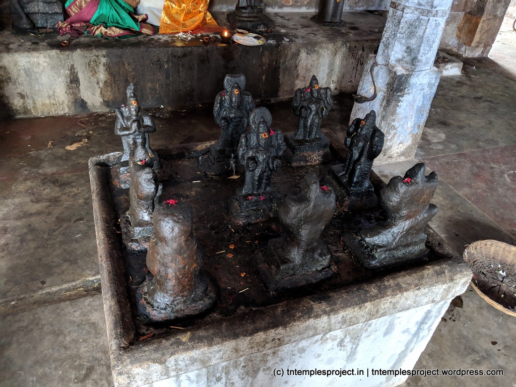பொதுவாக, நவக்கிரகங்கள் சூரியன் கிழக்கு நோக்கியவாறும், மற்ற கிரஹங்கள் எதுவும் மற்ற கிரகங்களை நோக்கியவாறும் அமைக்கப்பட்டிருக்கும். இங்கே, சூரியன் மேற்கு நோக்கித் திரும்பி, இறைவனை நோக்கி, மற்ற கிரகங்கள் அனைத்தும் சூரியனை நோக்கி நிற்கின்றன.