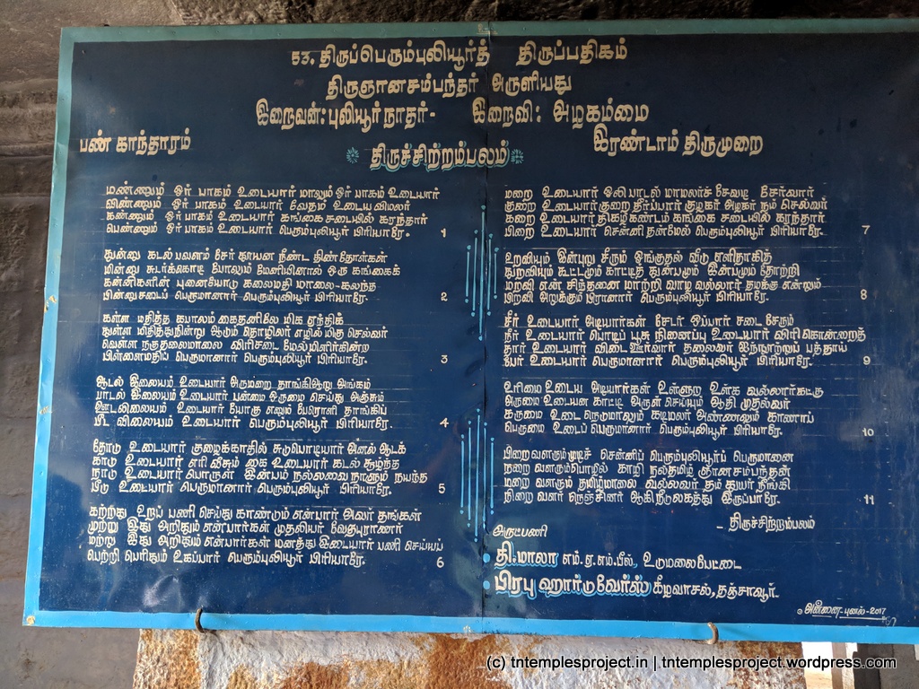 முனிவர் ஐந்து முக்கிய இடங்களில் சிவபெருமானை வழிபட்டார், அவற்றின் பெயர்கள் அனைத்தும் “புலியூர்” பின்னொட்டு கொண்டவை. அவை பெரும்பற்றப்புலியூர் (சிதம்பரம்), திருப்பாதிரிப்புலியூர், எருகத்தாம்புலியூர், ஓமாம்புலியூர் மற்றும் பெரும்புலியூர் (இந்தக் கோயில்).