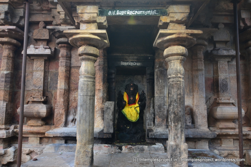 கோச்செங்க சோழனால் கட்டப்பட்ட 78 மாடக்கோயில்களில் இதுவும் ஒன்று. இது ஒரு இடைக்கால சோழர் கோவிலாகும், இது அர்த்த மண்டபம், மகா மண்டபம் மற்றும் கர்ப்பகிரஹம் ஆகியவற்றை உள்ளடக்கிய வெளிப்புற சுற்றளவு முழுவதும் அழகாக வடிவமைக்கப்பட்ட தூண்கள், கோஷ்டங்கள் போன்றவை. குறிப்பாக, தட்சிணாமூர்த்தி மற்றும் அர்த்தநாரீஸ்வரர் இருவரும் ரிஷப வாகனத்தில் அமர்ந்திருப்பது தனிச்சிறப்பு வாய்ந்தது. இக்கோயிலில் ஸ்ரீநிவாசப் பெருமாளுக்கும், ஜ்யேஷ்டா தேவிக்கும் தனி சன்னதியும் உள்ளது. கோயிலில் உள்ள கல் சுவர்களில் பல கல்வெட்டுகள் உள்ளன.