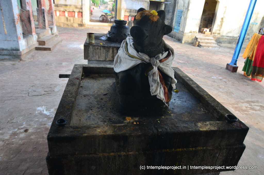 ஒரு சோழ மன்னன் (சில புராணங்களின்படி, இது கோச்செங்க சோழன்) தொழுநோயால் பாதிக்கப்பட்டு, குணமடைய பல சிவாலயங்களில் பிரார்த்தனை செய்தார். ஒருமுறை, நந்தி ஒரு மன்னன் கொண்டு வந்த புல்லைத் தின்னும் கோவிலில் வழிபாடு செய்யும்படி பரலோகக் குரல் கேட்டது. மன்னன் அதையெல்லாம் மறந்தான், ஒரு நாள் வரை, ஒரு புல் கொத்துக்களுடன் இந்த கோவிலுக்குள் நுழைந்தான், நந்தியின் கல் மூர்த்தி அதை அவனிடமிருந்து இழுத்து சாப்பிடத் தொடங்கினான். காலப்போக்கில் மன்னன் குணமடைந்து, இந்தக் கோயிலைக் கட்டினான்.