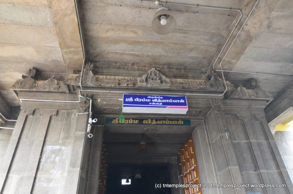The story of Murugan punishing Brahma for not knowing the meaning of the pranava mantram, is well known, and associated with many temples. However, after Brahma’s curse was remedied by worshipping Siva, he realised that he had lost his Brahma Gnanam, and so was unable to carry out his duties of creation. After further penance to Siva, the Lord taught him the Brahma Gnanam, and Parvati taught him Brahma Kala (the art of creation). Parvati here is called Brahma Vidyambikai.