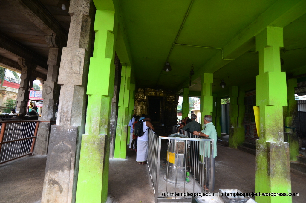 When Sambandar, the child-saint, visited this temple, the entire place appeared as Siva lokam to him, and the place was filled with Siva Lingams. Not knowing what to do and how to worship the Lord, the saint started crying and wept for Parvati, calling out to her as “Ammaye” (Mother). Parvati carried him into the temple, and there is a murti depicting this inside the temple. She is also locally referred to as Pillai Idikki Amman (Amman carrying the child). The place where Sambandar called out is called Koopittaan Kulam, and the Vinakayar near that is called Sambanda Vinaykar.